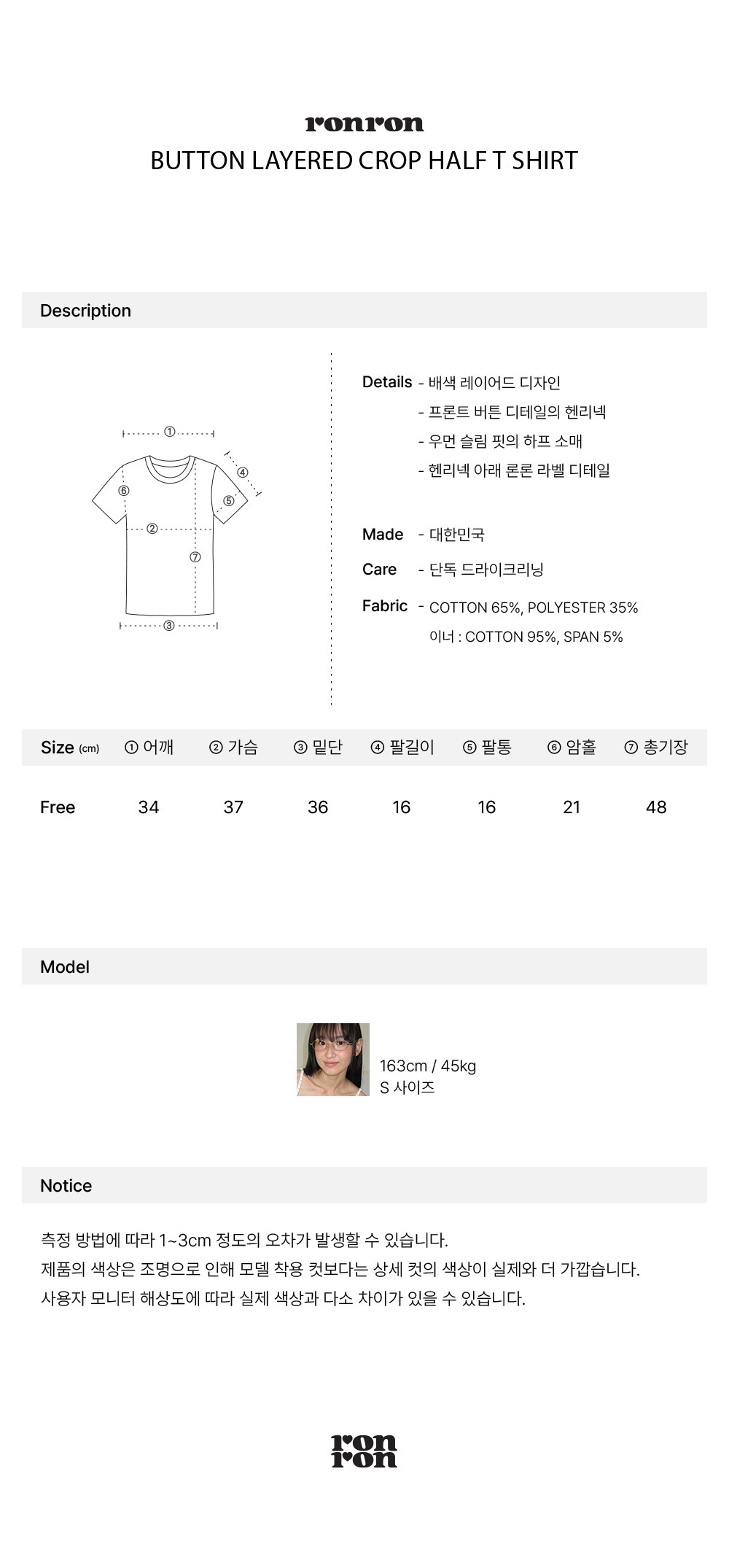 Size: Free size (總長48 肩寬34 胸寬37 袖長16 cm)