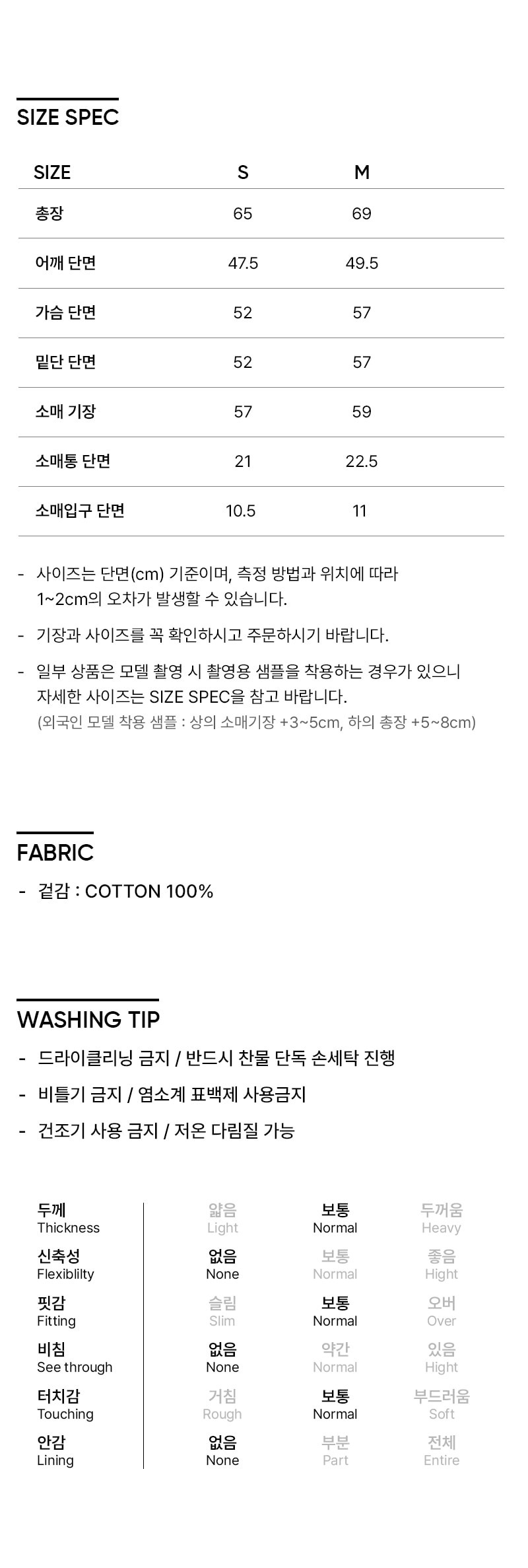 S SIZE (總長68 肩寬48 胸寬52 袖長57 cm)