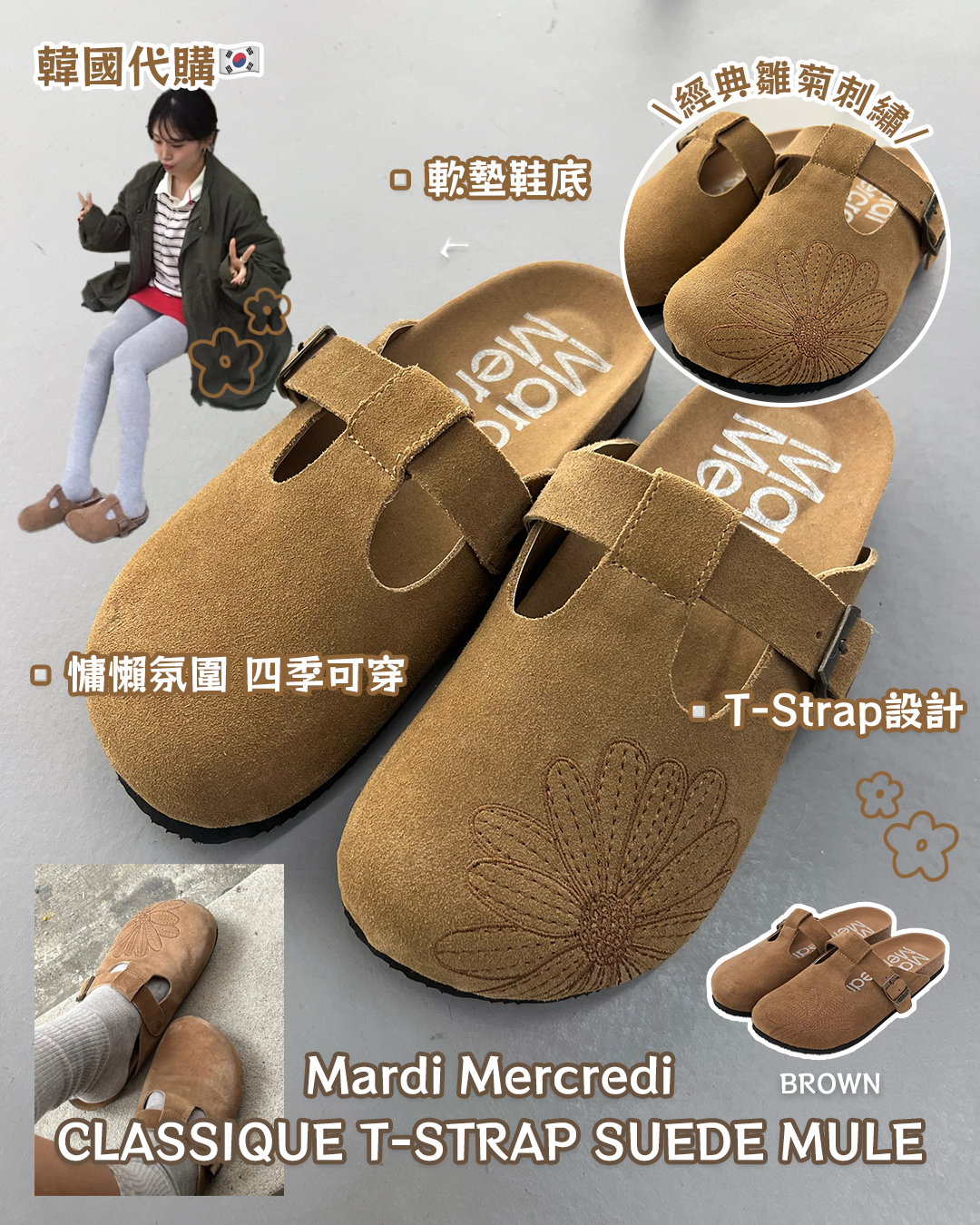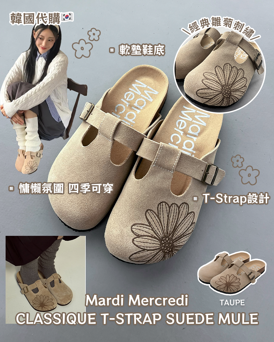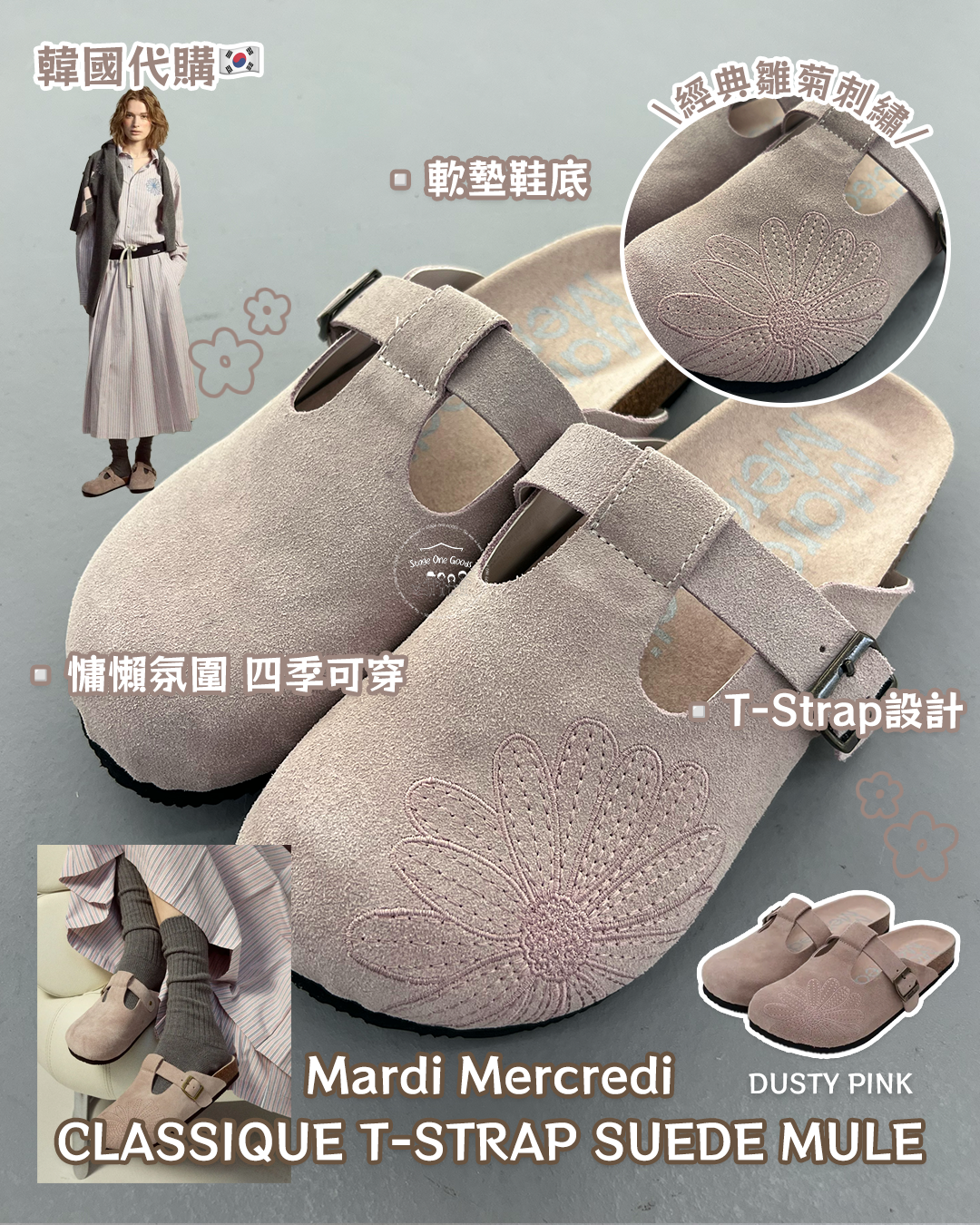 Mardi Mercredi CLASSIQUE T-STRAP SUEDE MULE