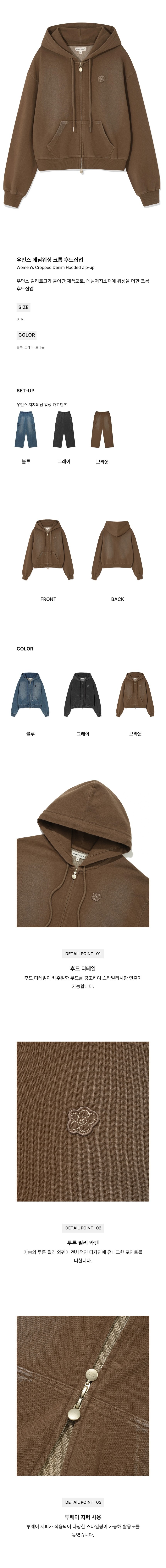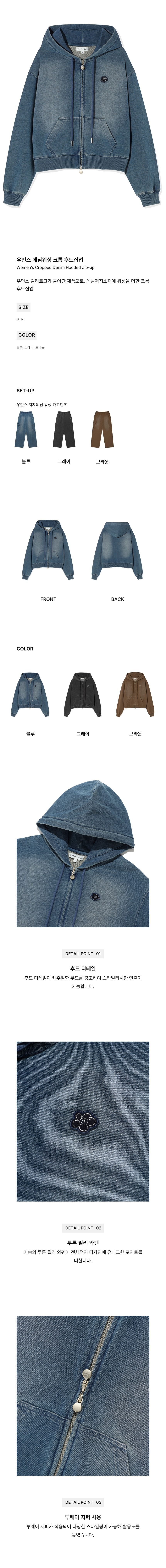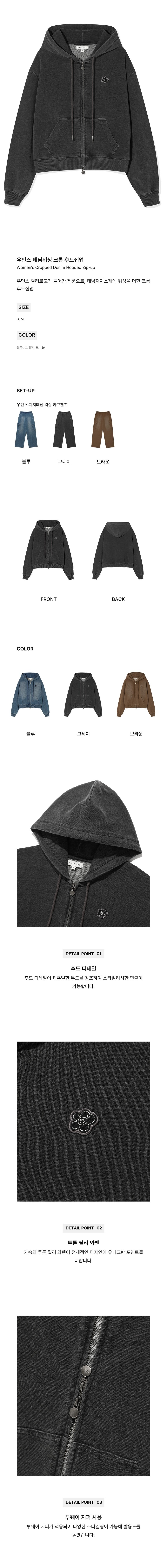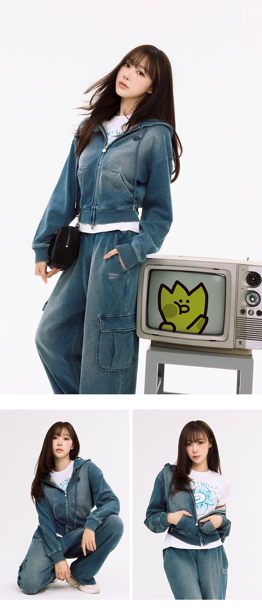 WACKY WILLY Women's Denim Washing Crop Hoodie Zip-Up