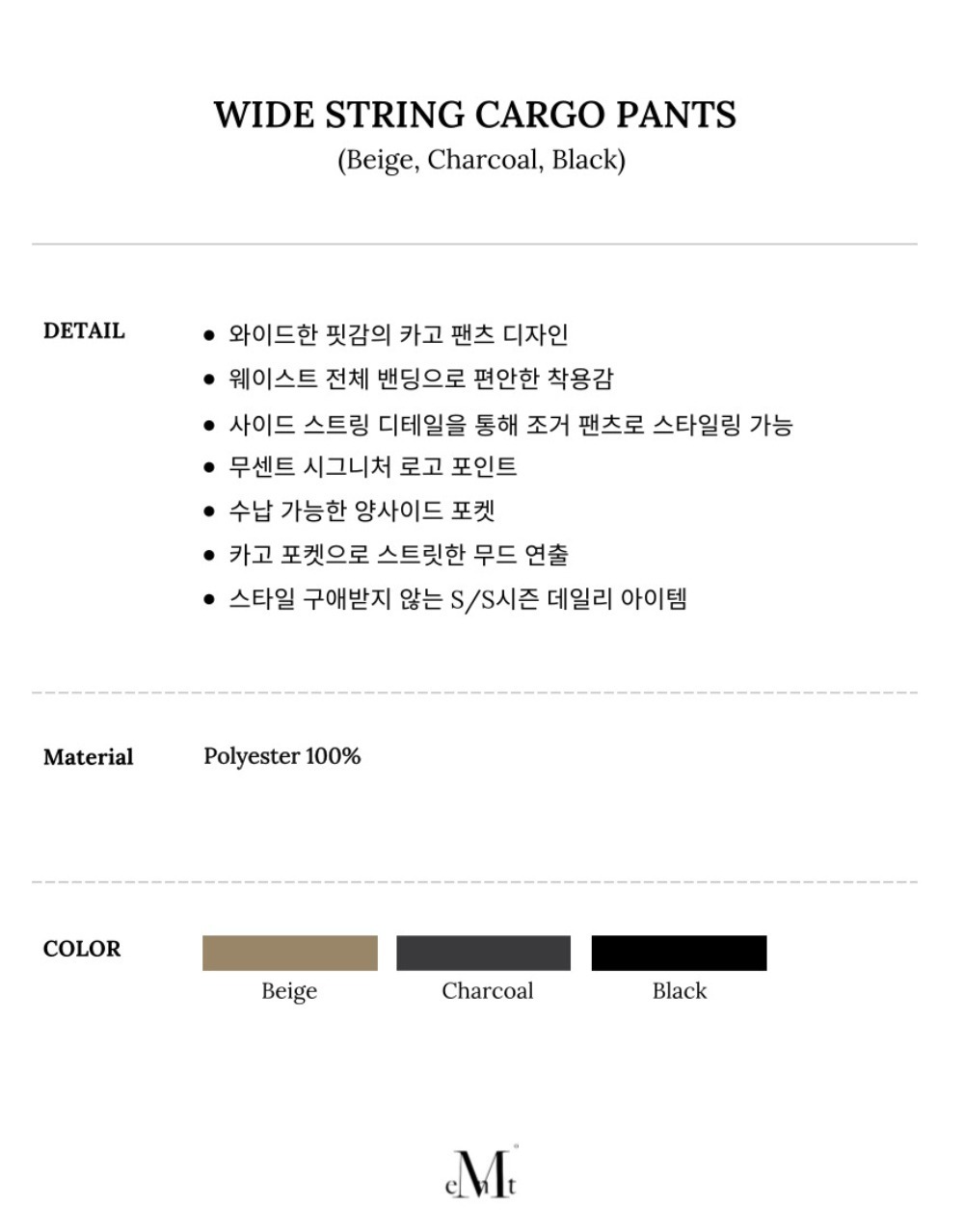 MUCENT WIDE STRING CARGO PANTS