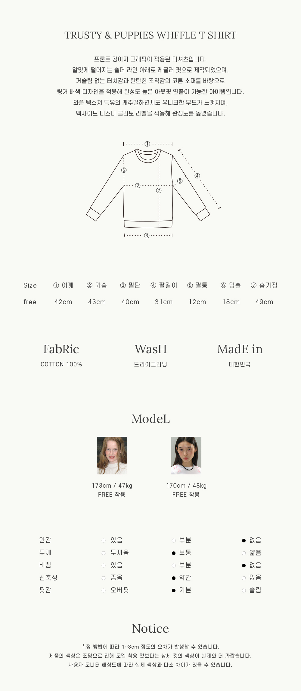 Size: Free size (總長49 肩寬42 胸寬43 袖長31 cm)