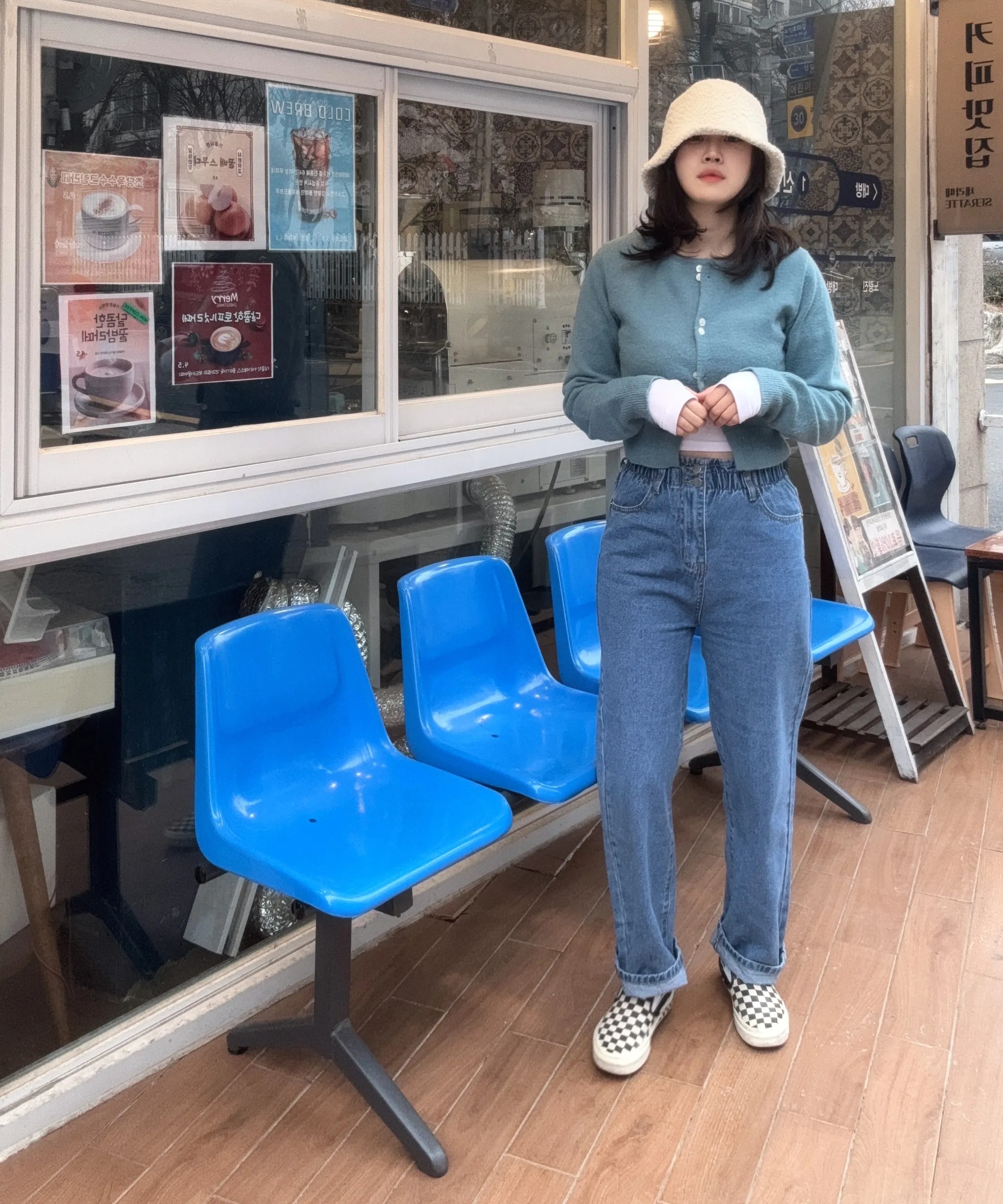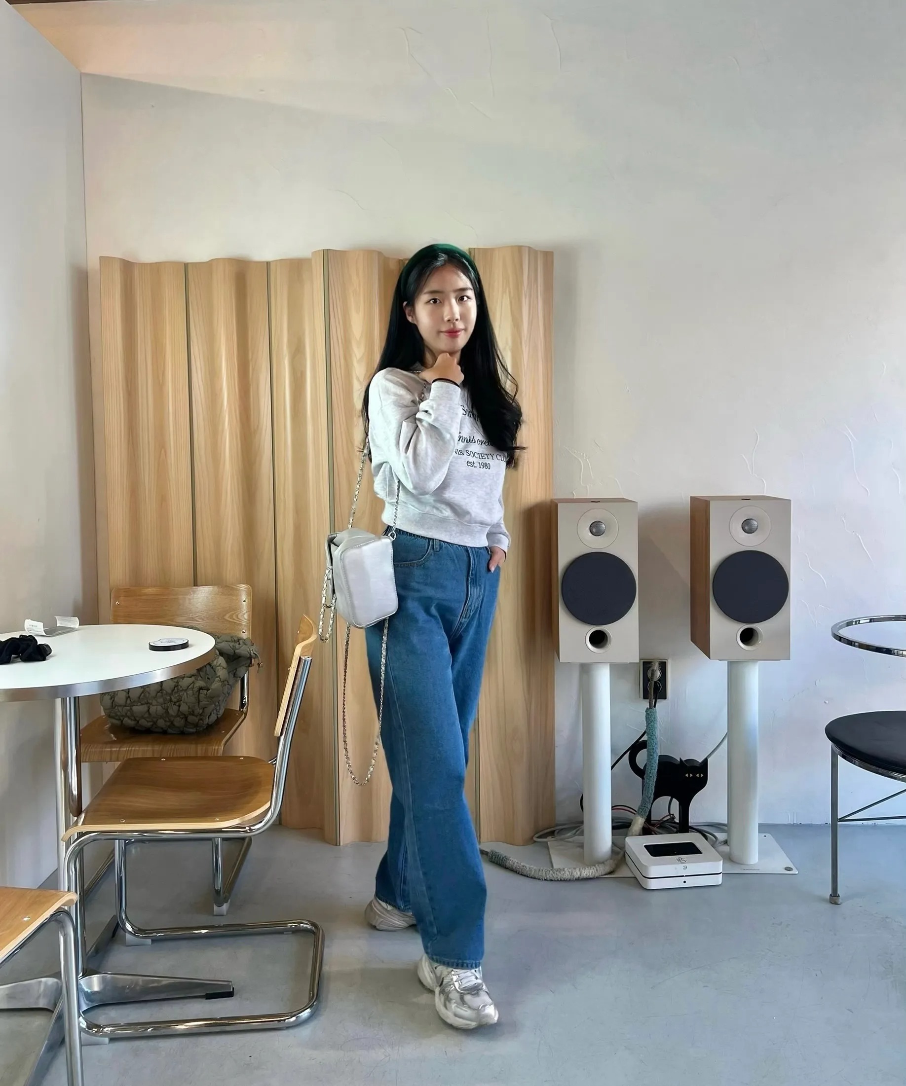 這款牛仔褲採用彈性混紡棉質布料,剪裁俐落、版型寬鬆