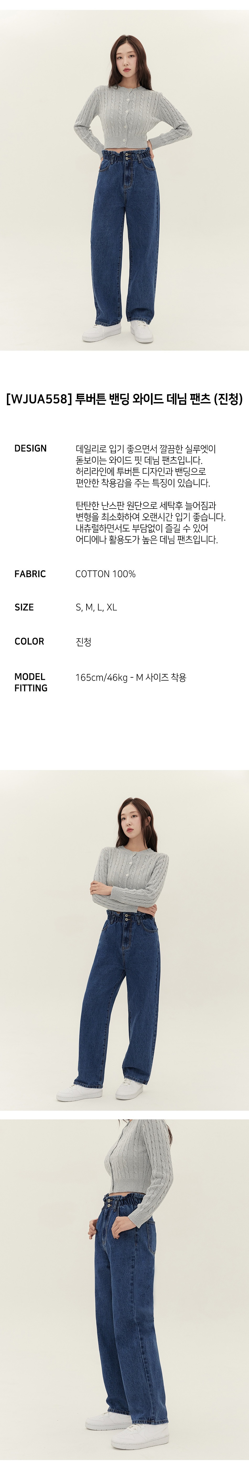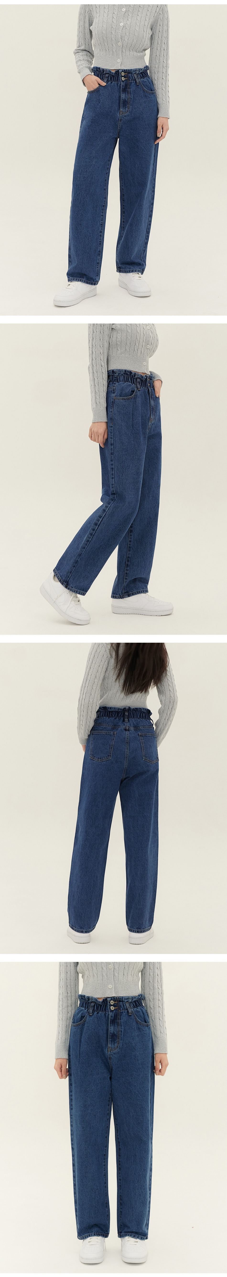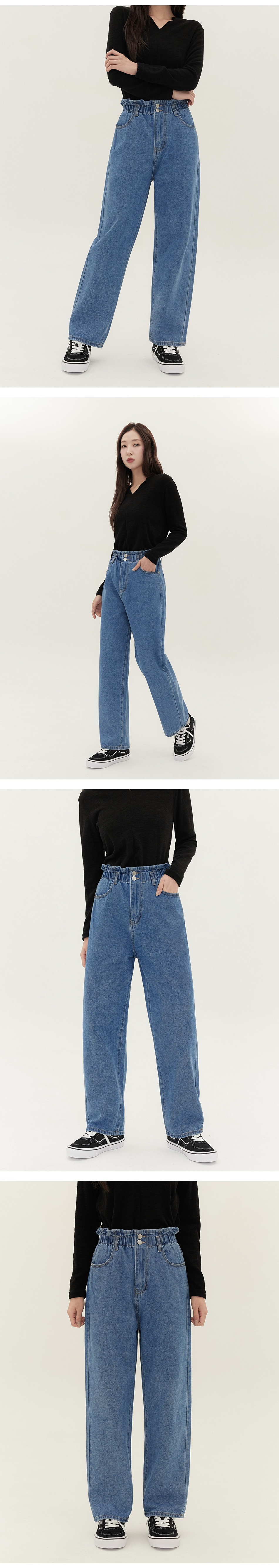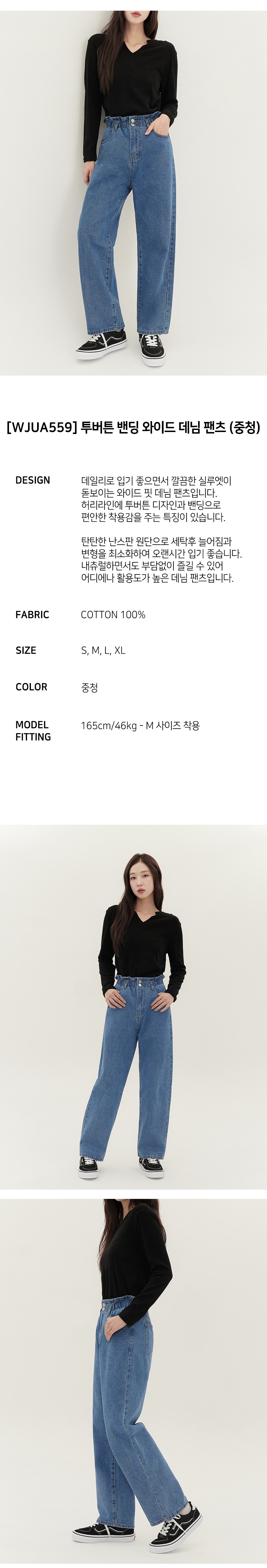 JINMANIA Two-Button Banding Wide Denim Pants