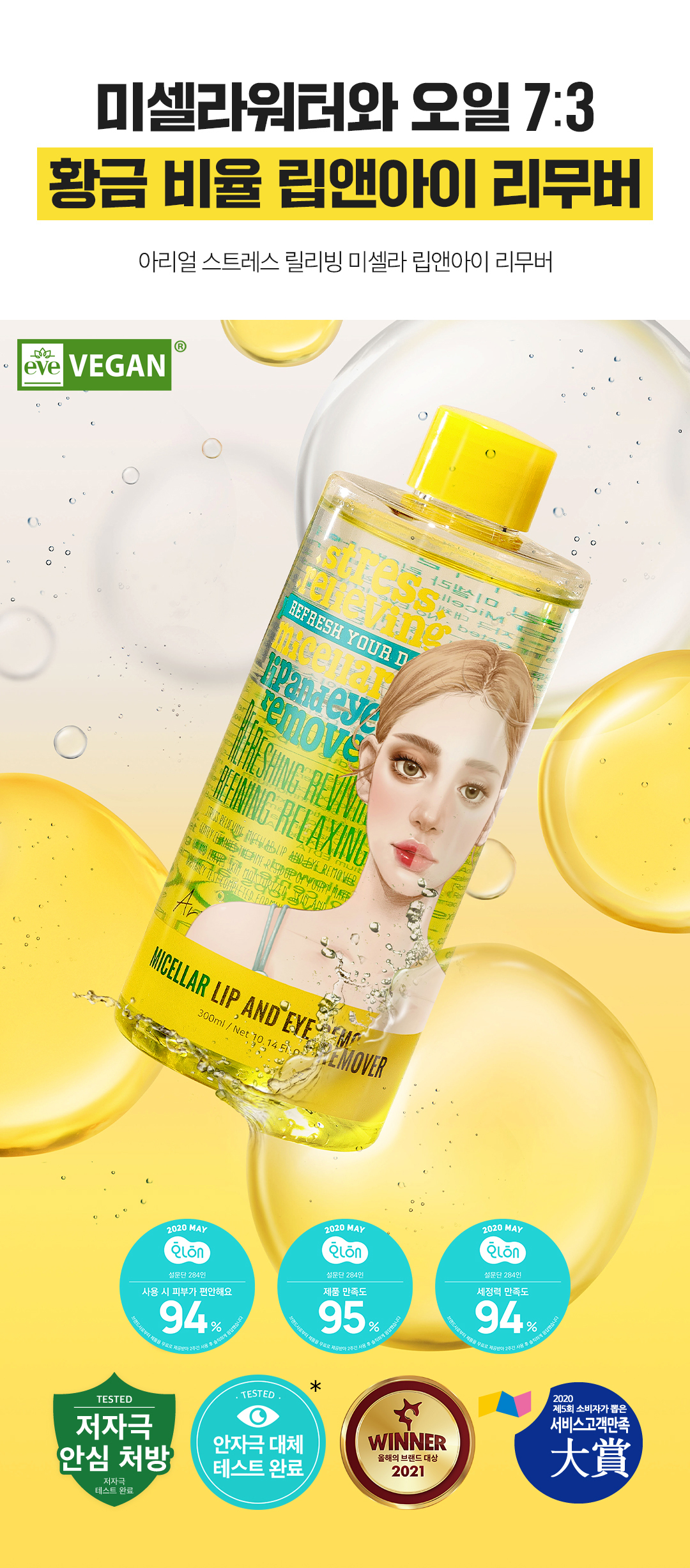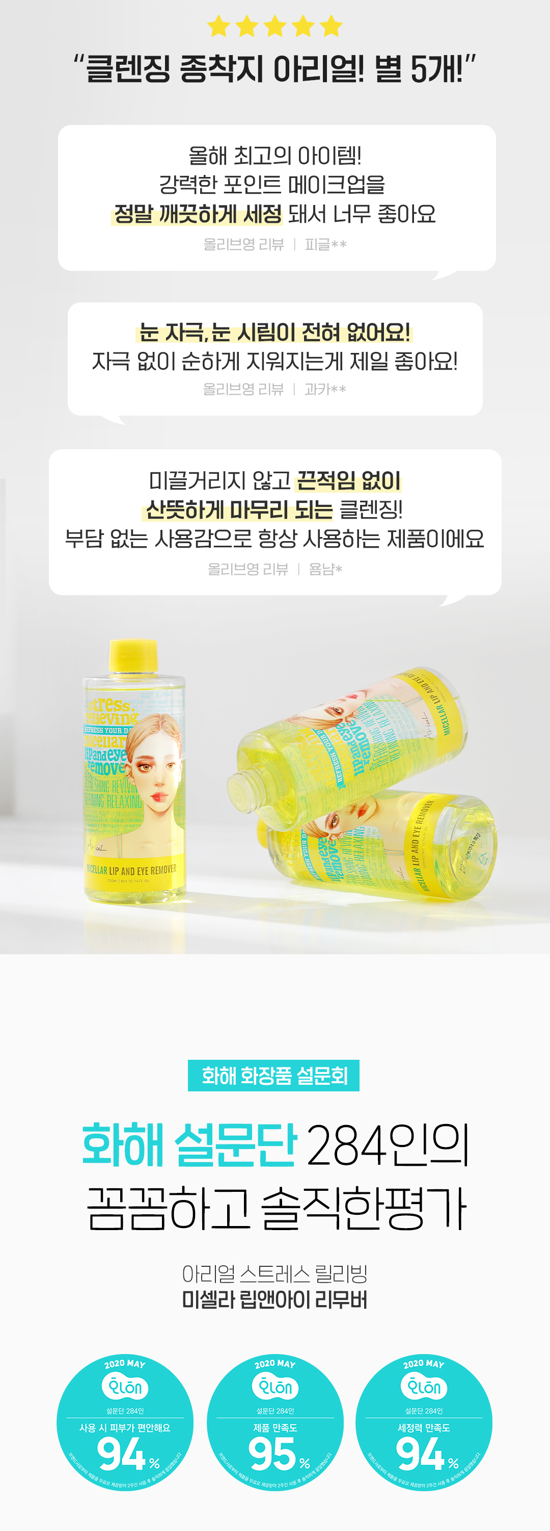 Ariul Stress Relieving Micellar Lip and Eye Remover 300ml