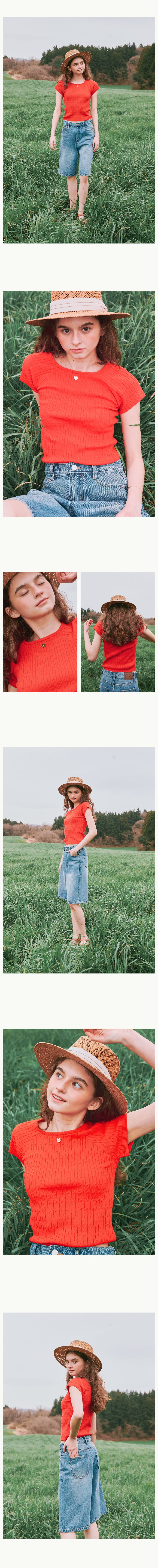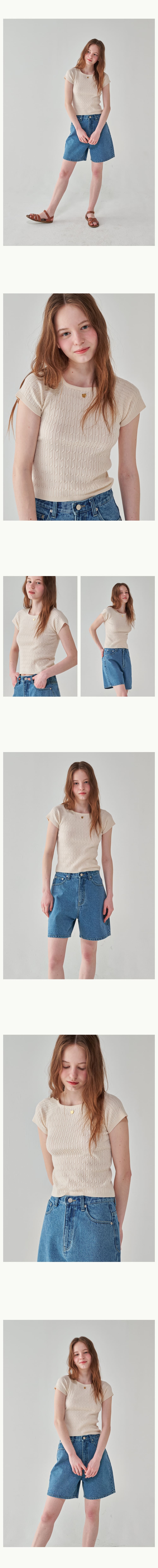 RONRON SQUARE NECK CABLE SHORT SLEEVE KNIT