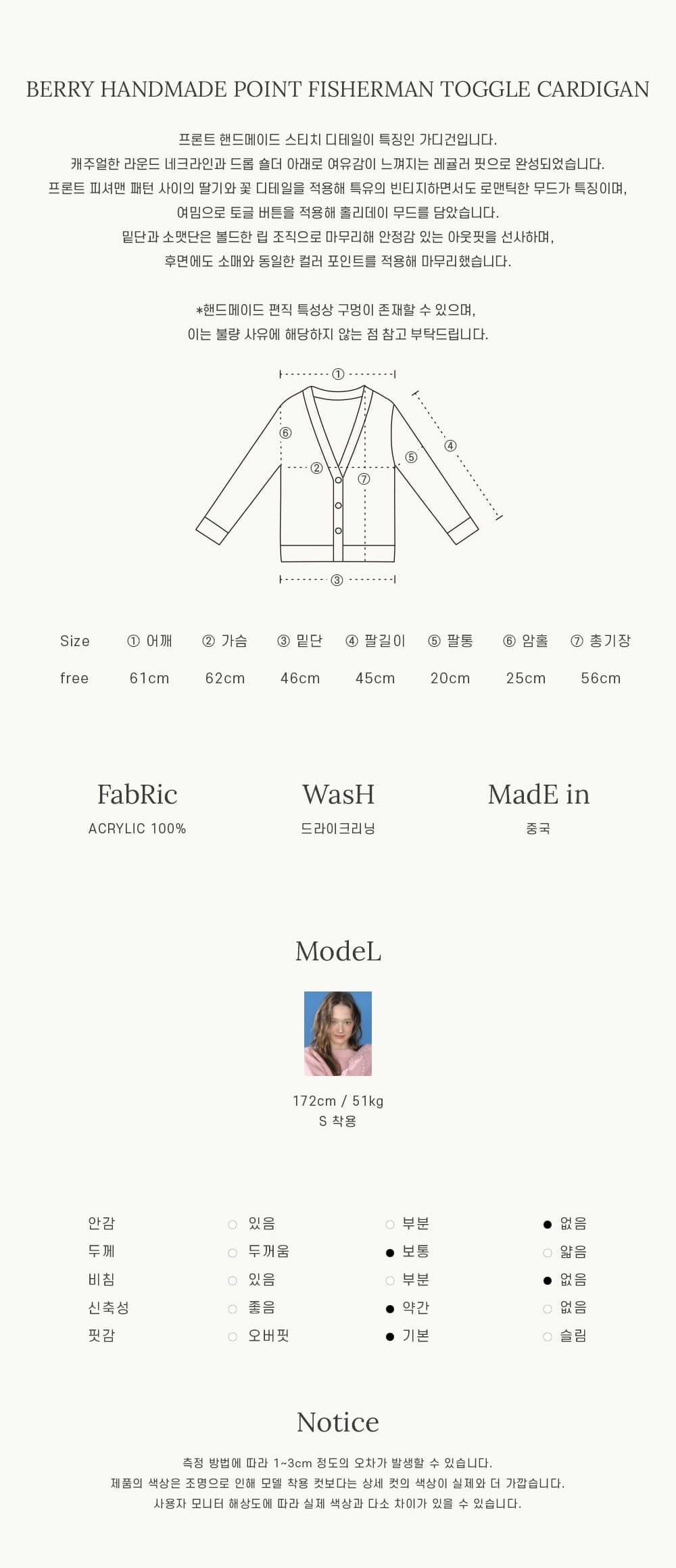 Size: Free size (總長56 肩寬61 胸寬62 下擺46 袖長45 袖筒20 cm)