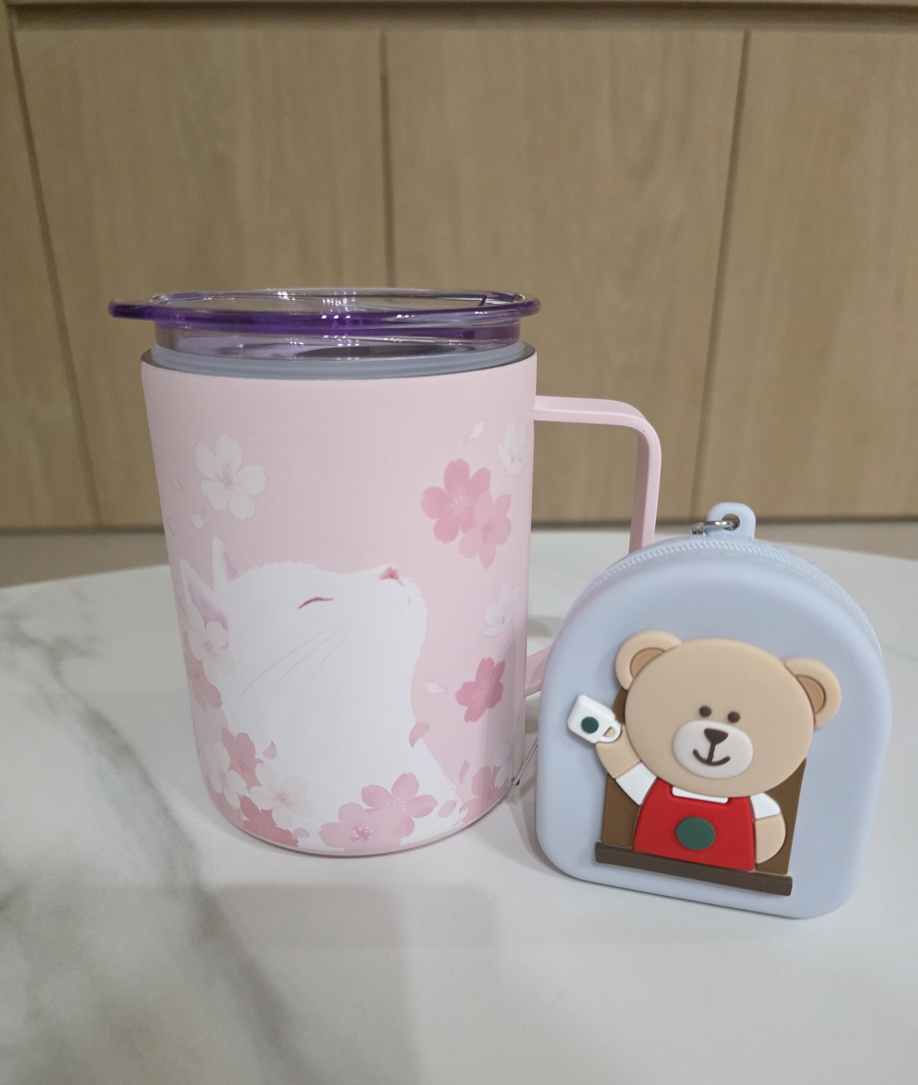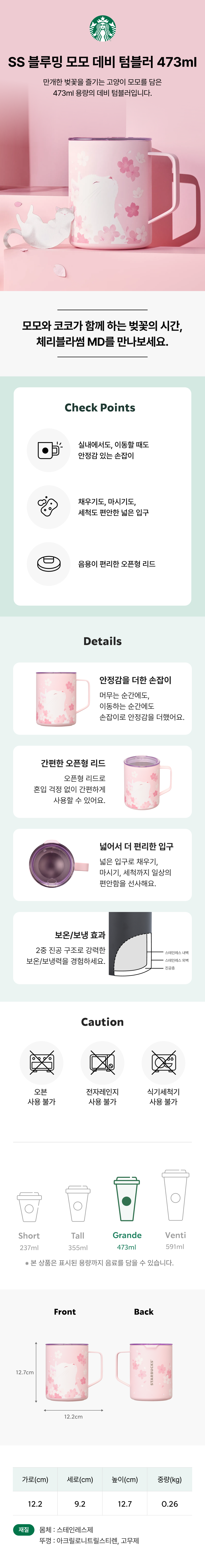 以欣賞盛開櫻花的小貓 Momo 插畫作為設計的 473ml 容量 Debby 隨行杯。
