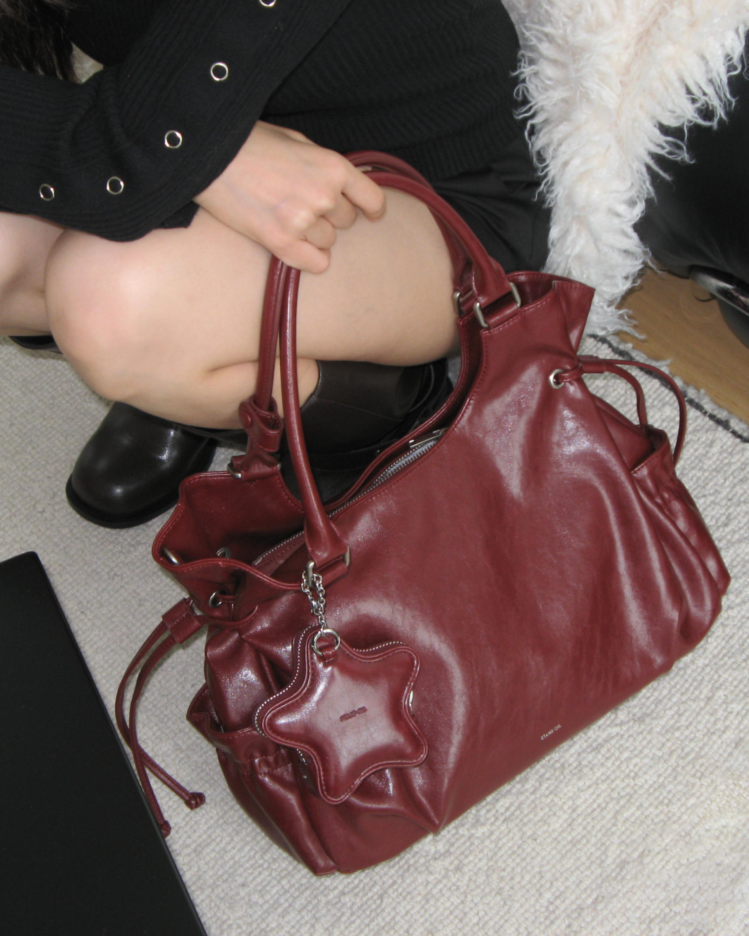 Polyester 60%, Faux Leather (Non-Animal) 40%