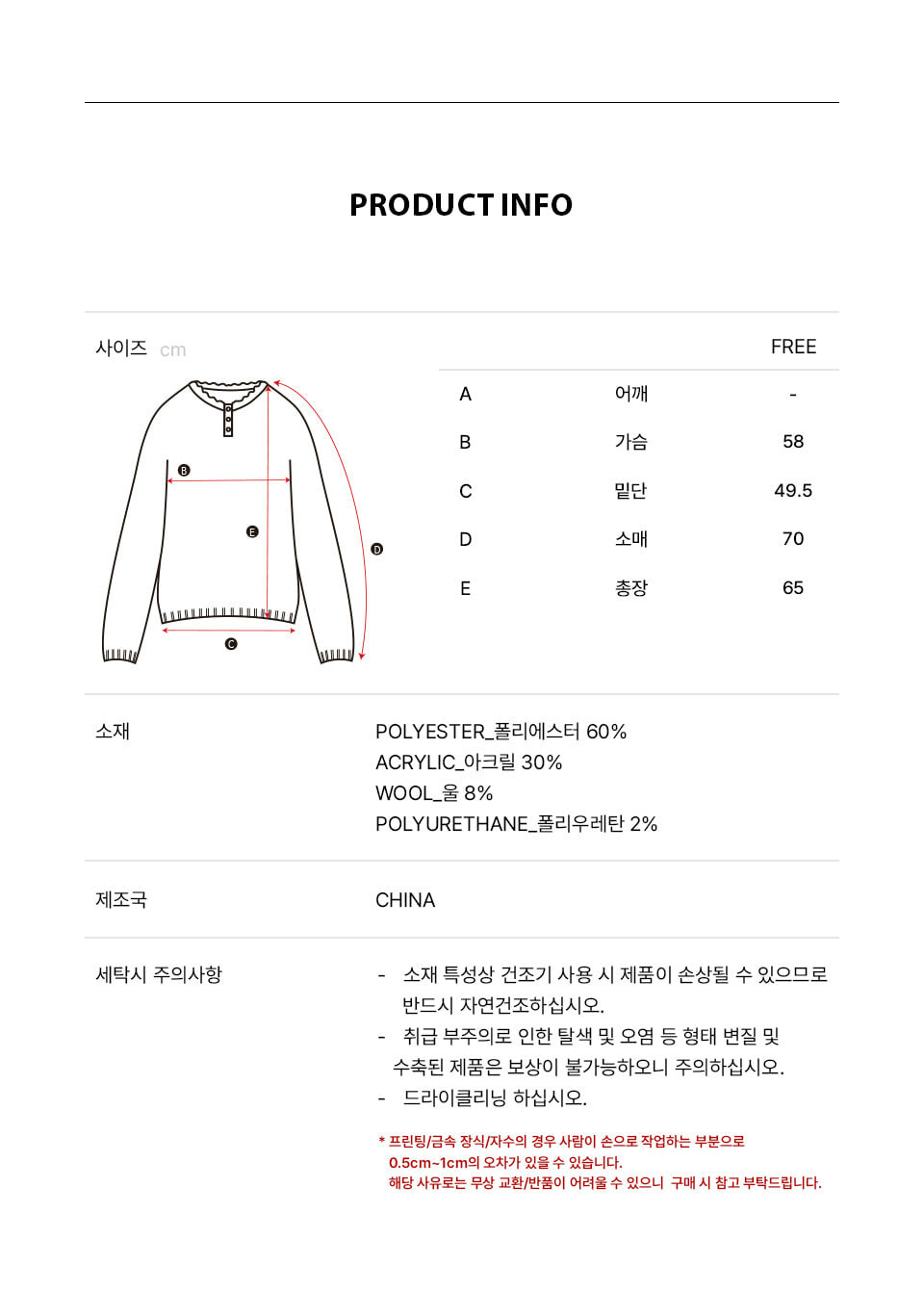 Size: 總長65 肩寬 胸寬58 袖長70 cm