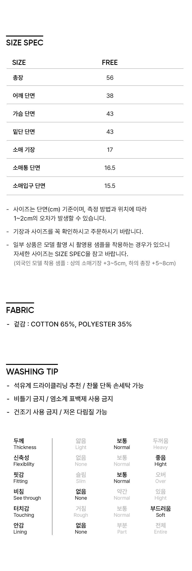 FREE SIZE (總長56 肩寬38 胸寬43 袖長17 cm)
