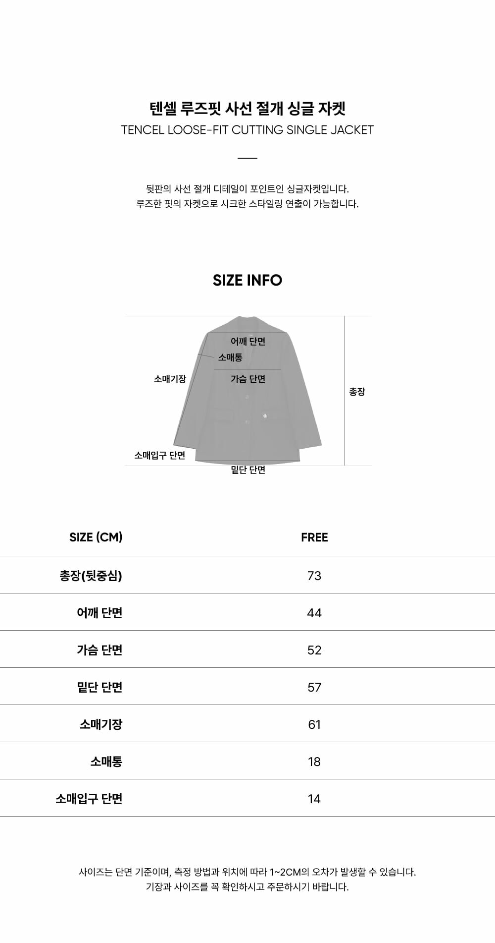 (總長73 肩寬44 胸寬52 腰寬 下擺寬57 袖長61 cm)