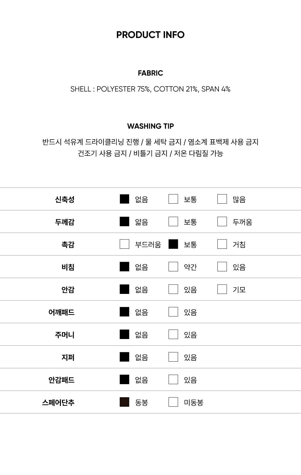 Fabric: POLYESTER 75% COTTON 21% SPAN 4%