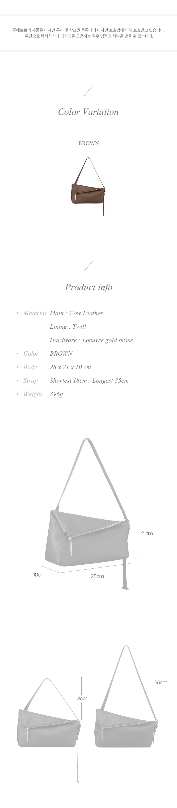 Material: Main - Cow Leather, Lining - Twill, Hardware - Loeuvre gold brass