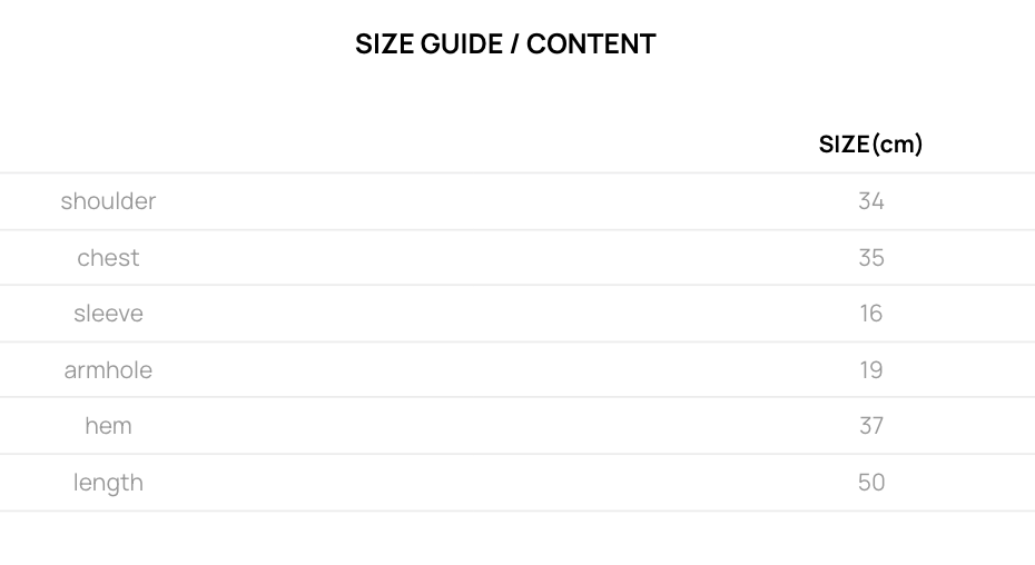 Size: Free SIze (總長50 肩寬34 胸寬35 下擺37 袖長16 袖筒圍19 cm)
