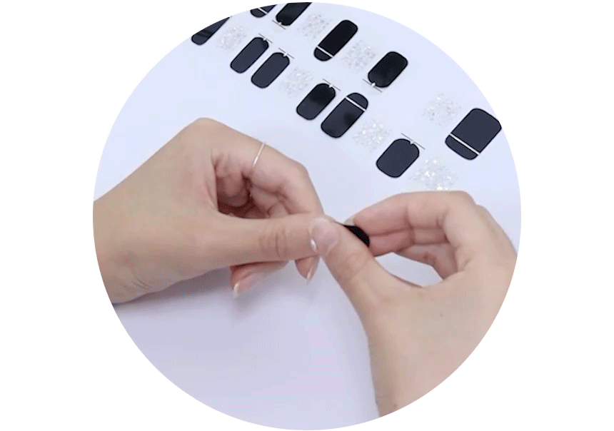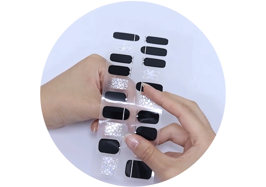 選擇合適大小的指甲貼貼上,建議選擇比真甲小10%左右大小的指甲貼