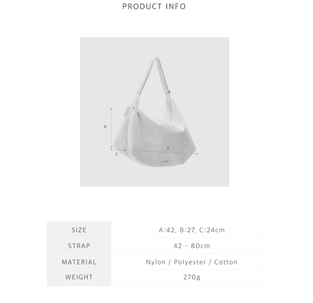 Size: 42 x 27 x 24cm, 270g (孭帶: 42-80cm)