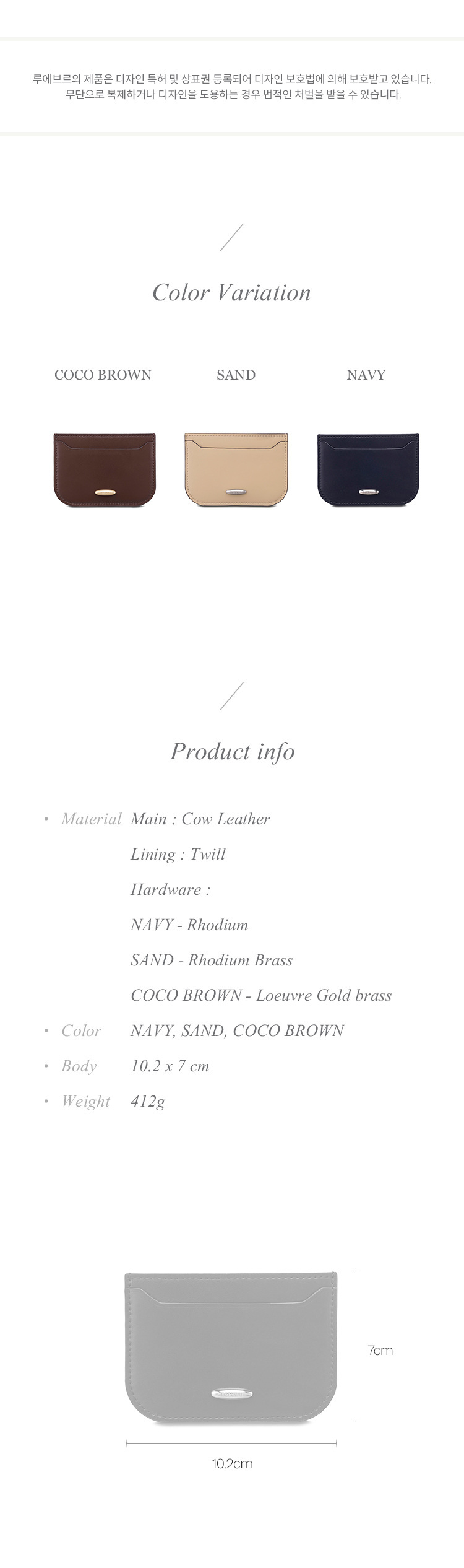 Material: Main - Cow Leather, Lining - Twill, Hardware - Rhodium(NAVY), Rhodium Brass(SAND), Loeuvre gold brass(COCO BROWN)
