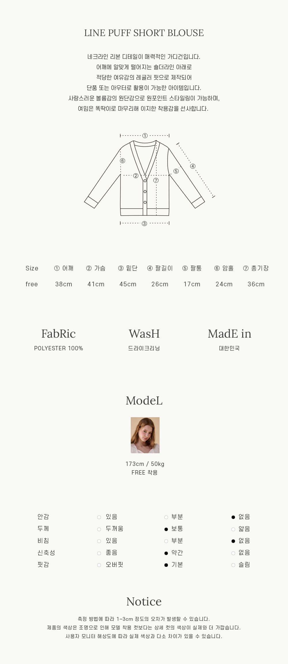 Size: Free size (總長36 肩寬38 胸寬41 袖長26 cm)
