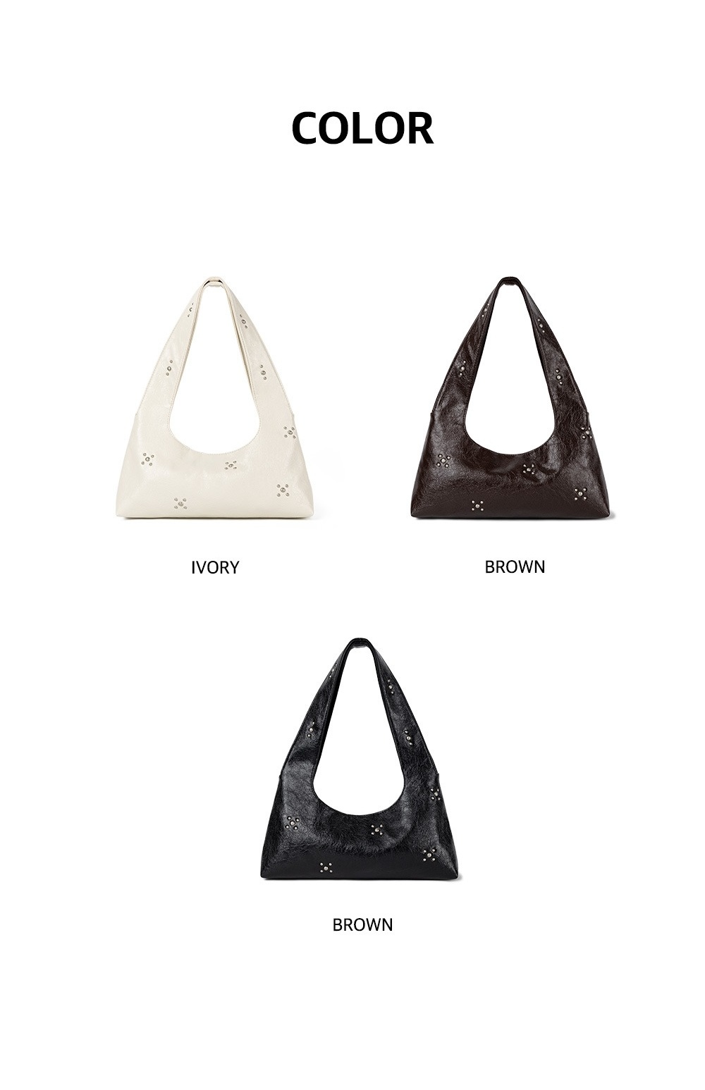 - 極簡袋型加上鉚釘裝飾,設計時尚有型
