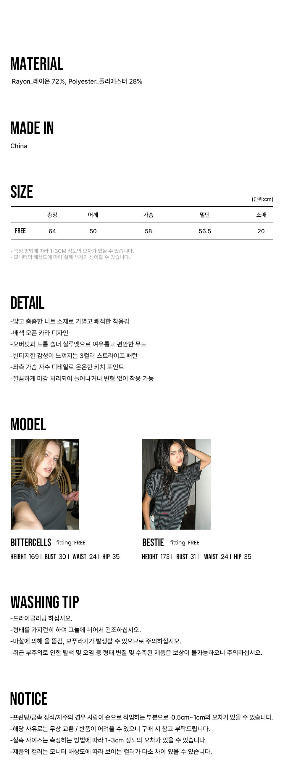FREE SIZE (總長64 肩寬50 胸寬58 袖長20 cm)