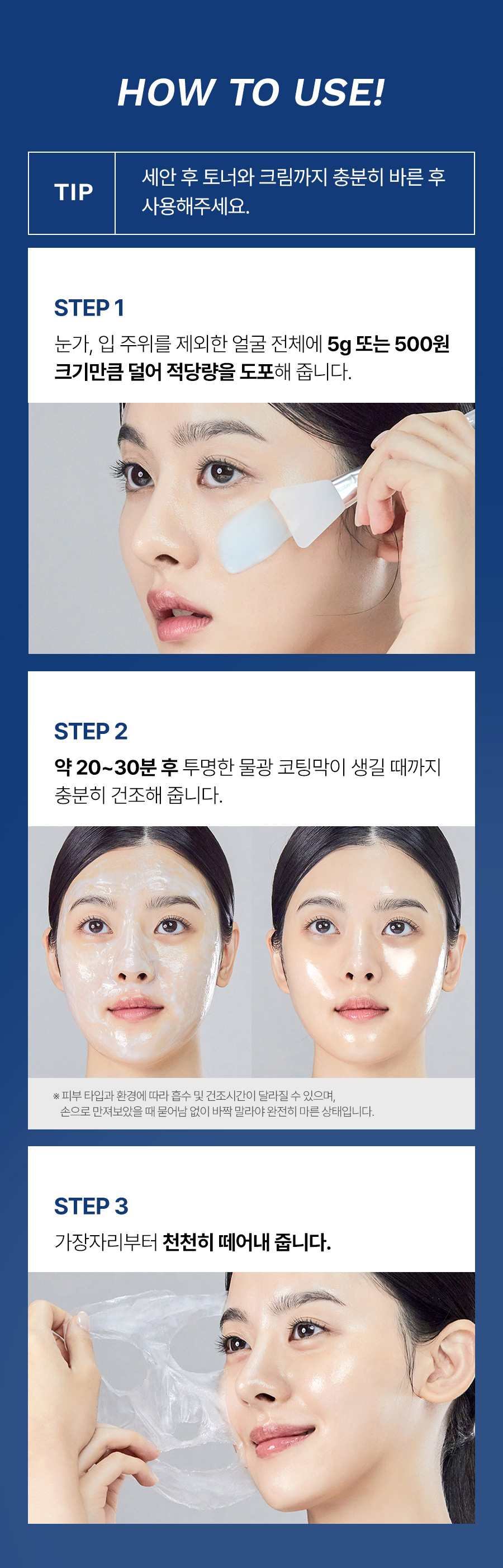 1. 洗面後用5g左右份量搽全面,避開眼周圍,嘴邊