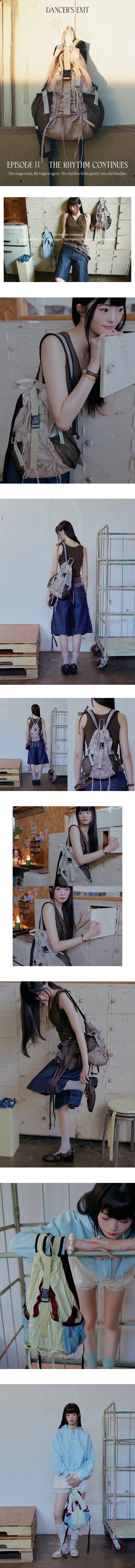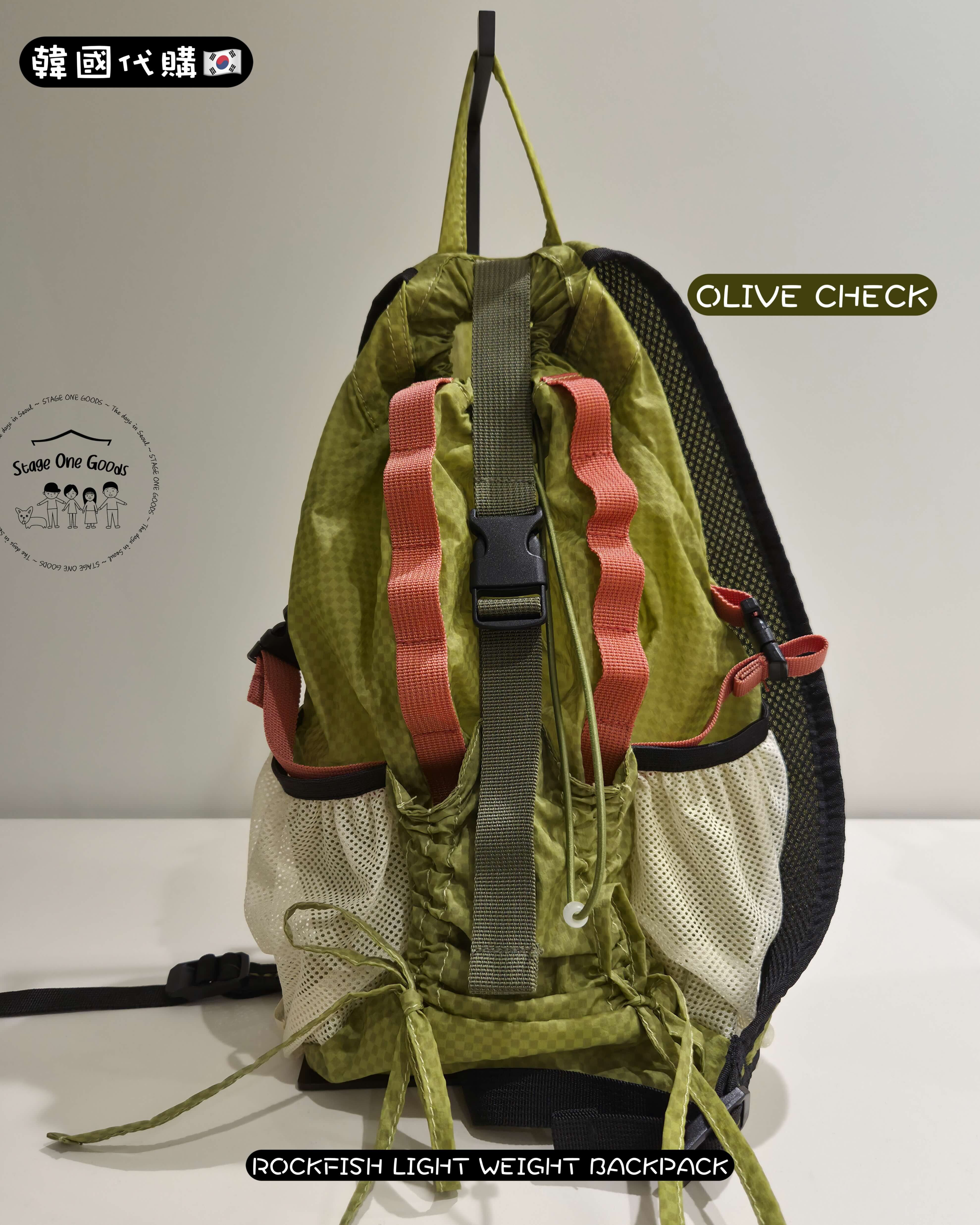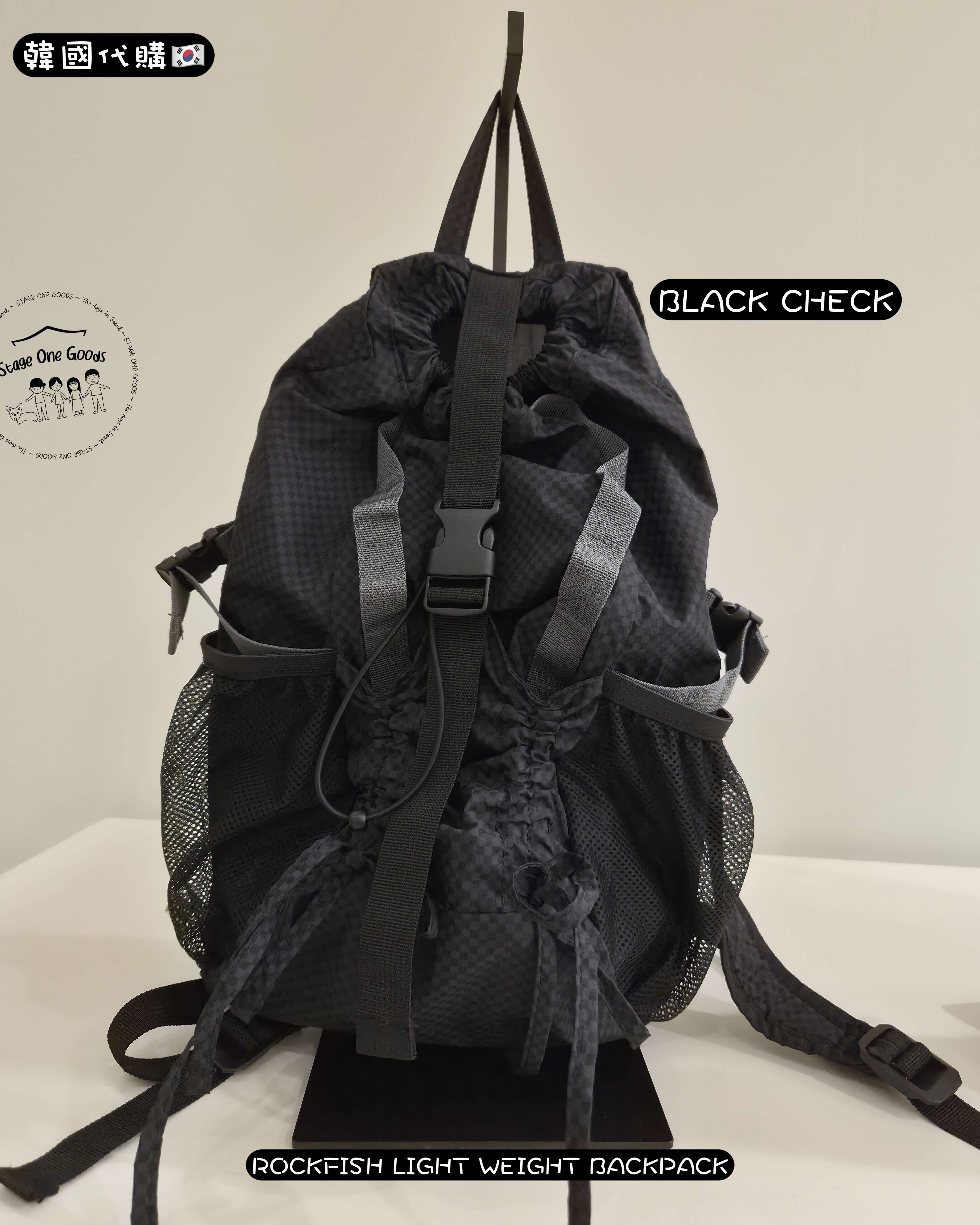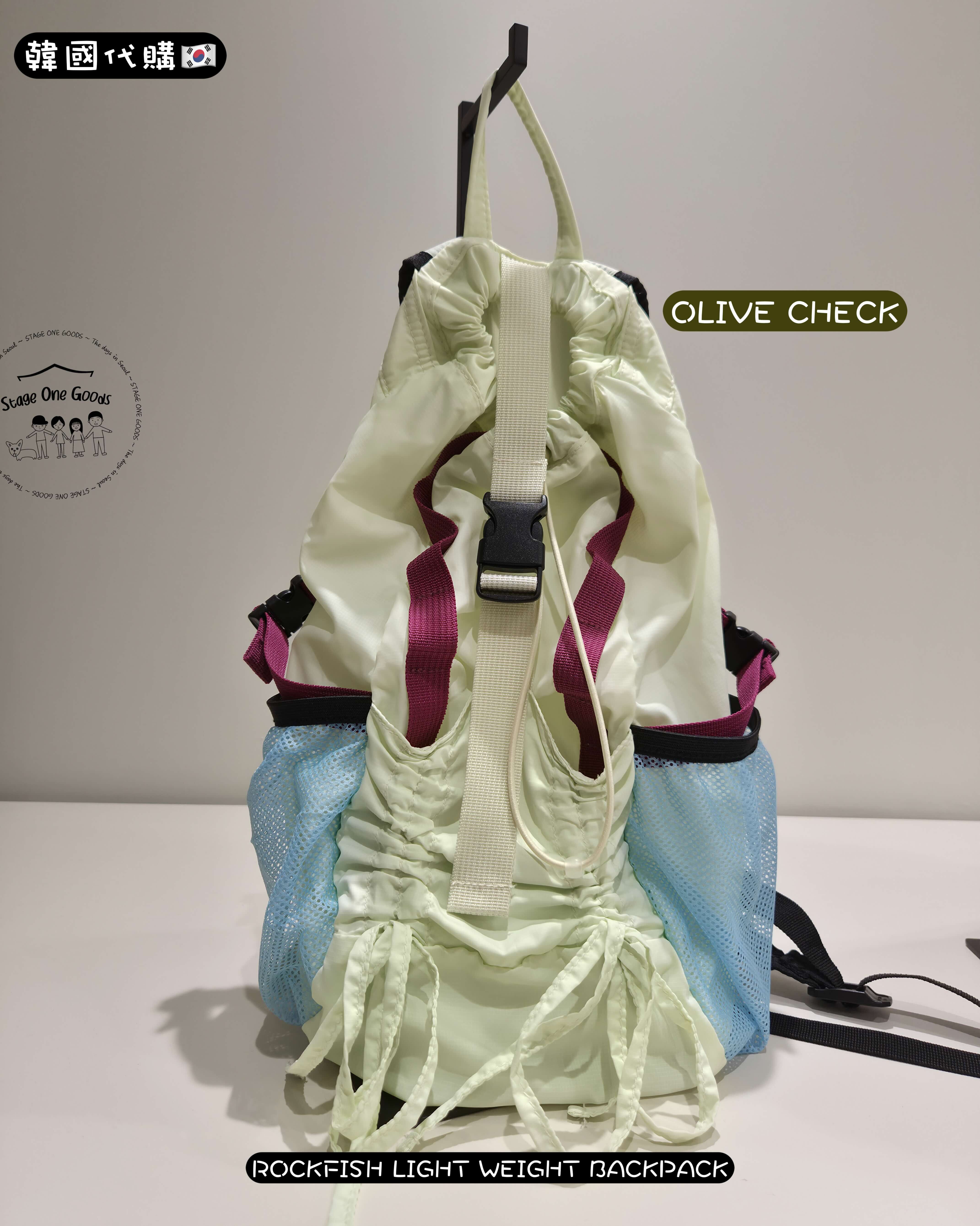 - 前方蝴蝶結抽繩口袋 & 側邊網布口袋