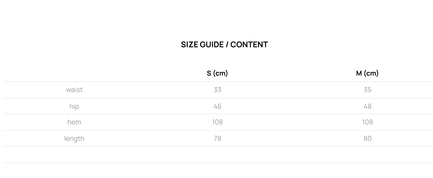 M (總長80 臀寬48 腰寬35 下擺108 cm)