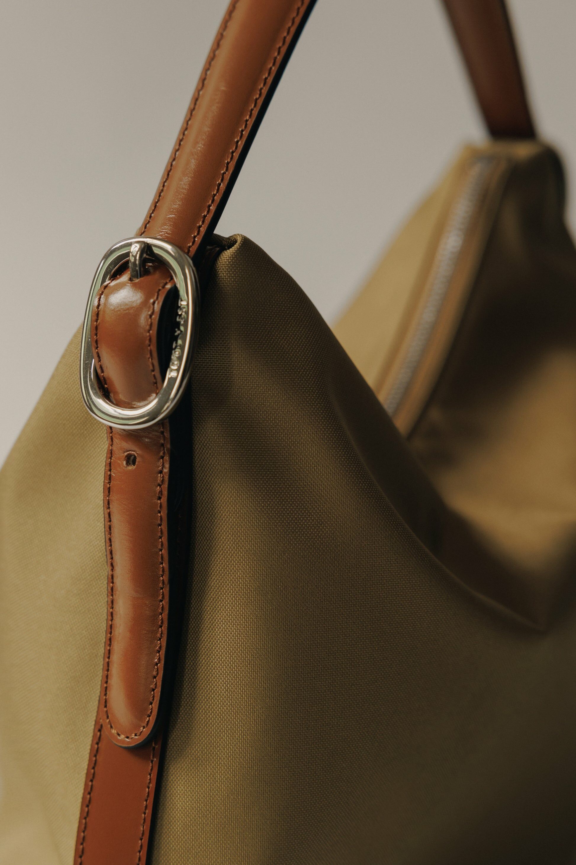 Material: Polyester / Trim: Cowhide / Lining: Cotton/Linen Canvas