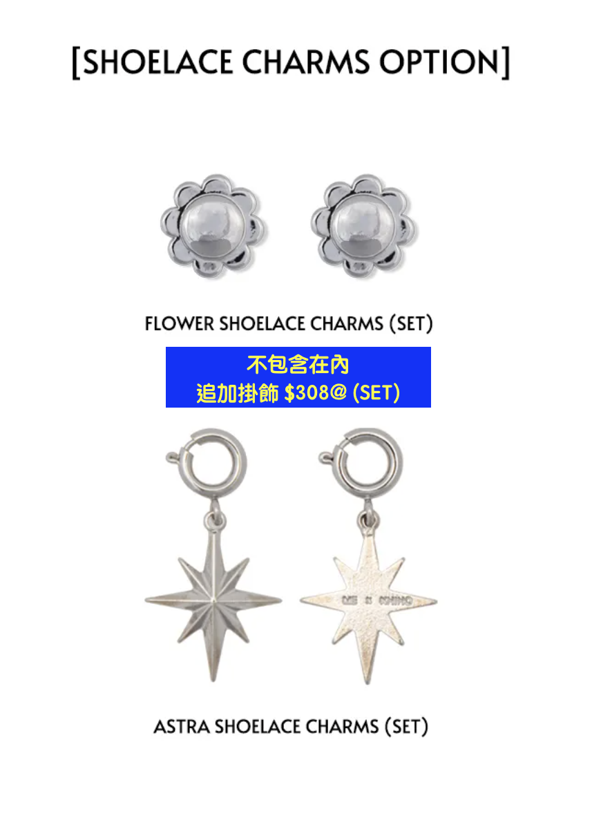 鞋帶上星星/花圖案掛飾都不包括在內
