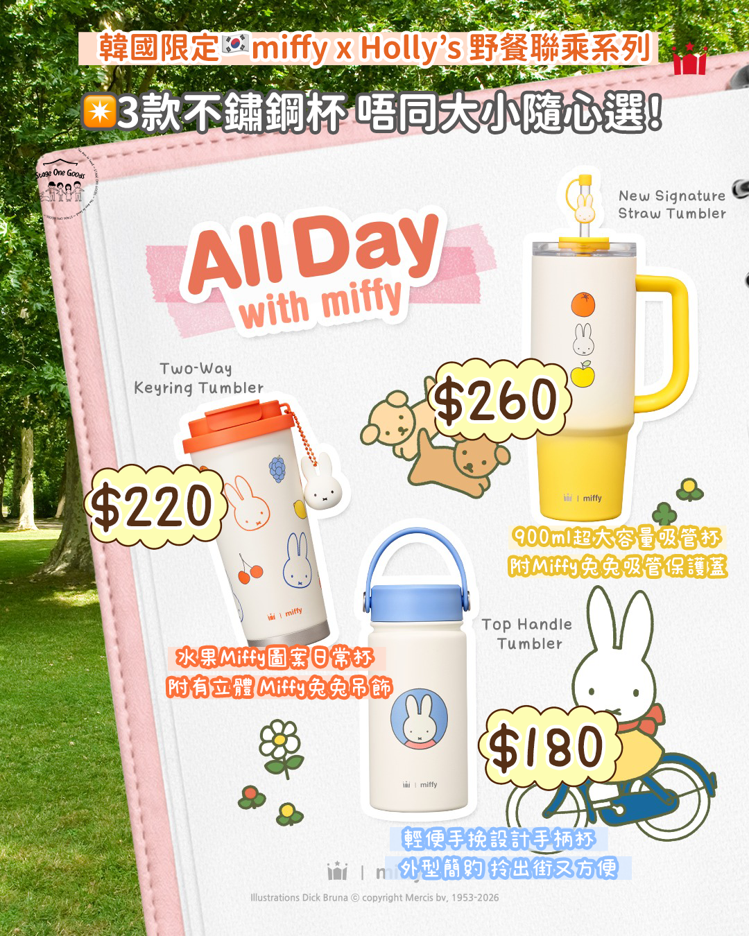 韓國代購 Holly's X MIFFY Two-Way Keyring Tumbler