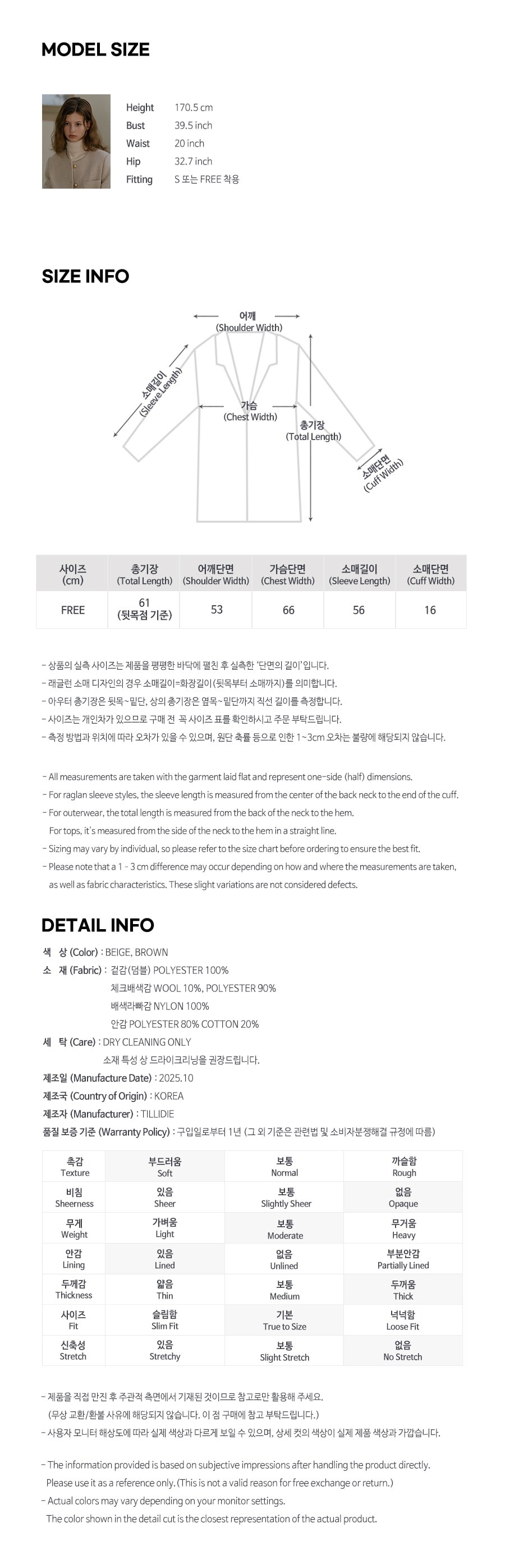 FREE SIZE (總長61 肩寬53 胸寬66 袖長56 cm)