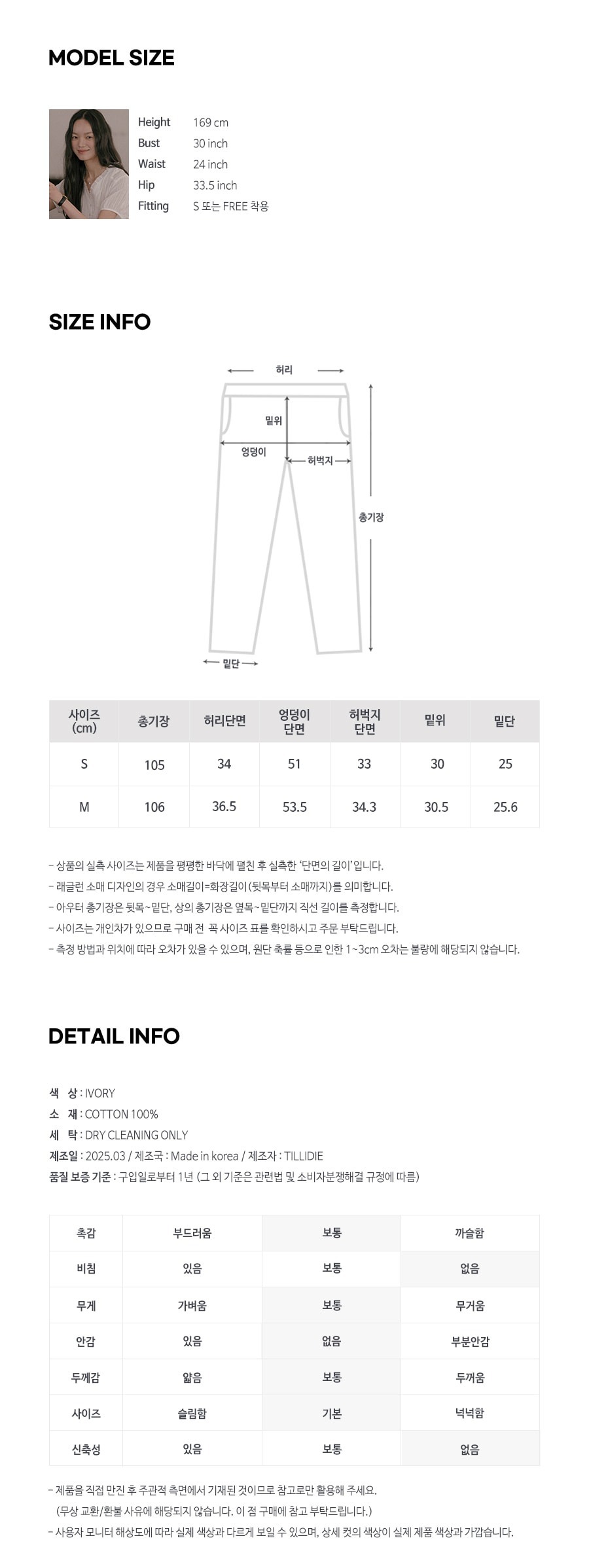 S SIZE (總長105 腰寬34 臀寬51 cm)
