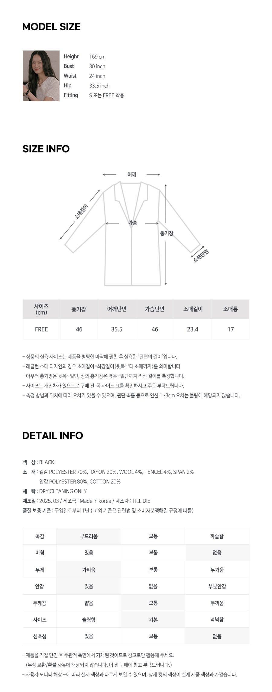 FREE SIZE (總長46 肩寬35.5 胸寬46 袖長23.4 cm)
