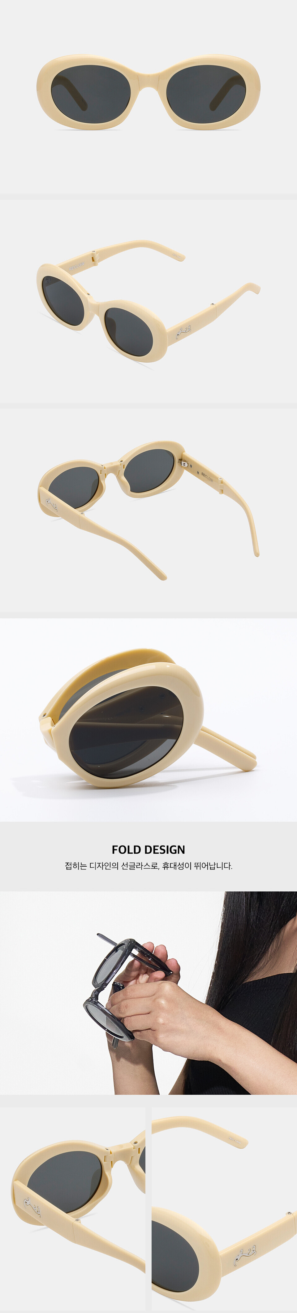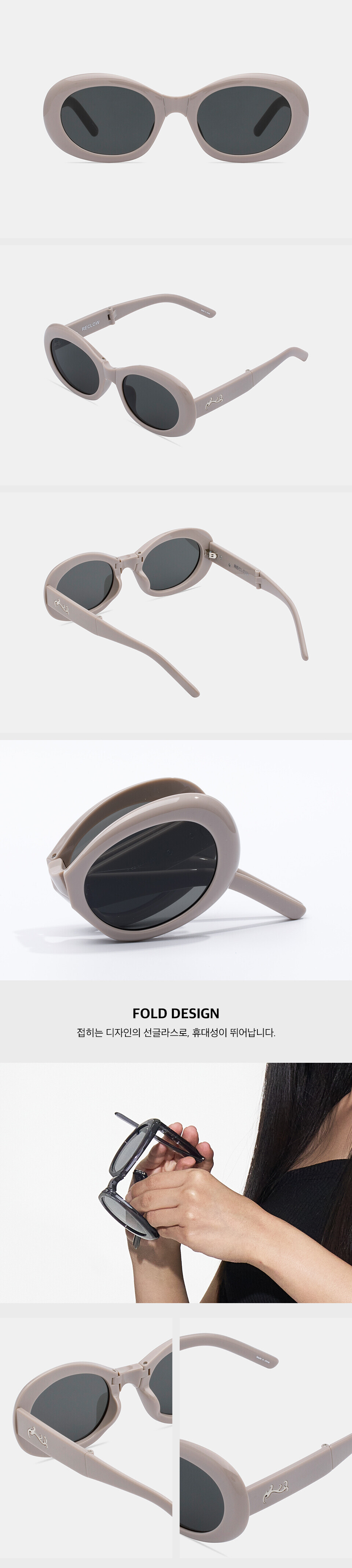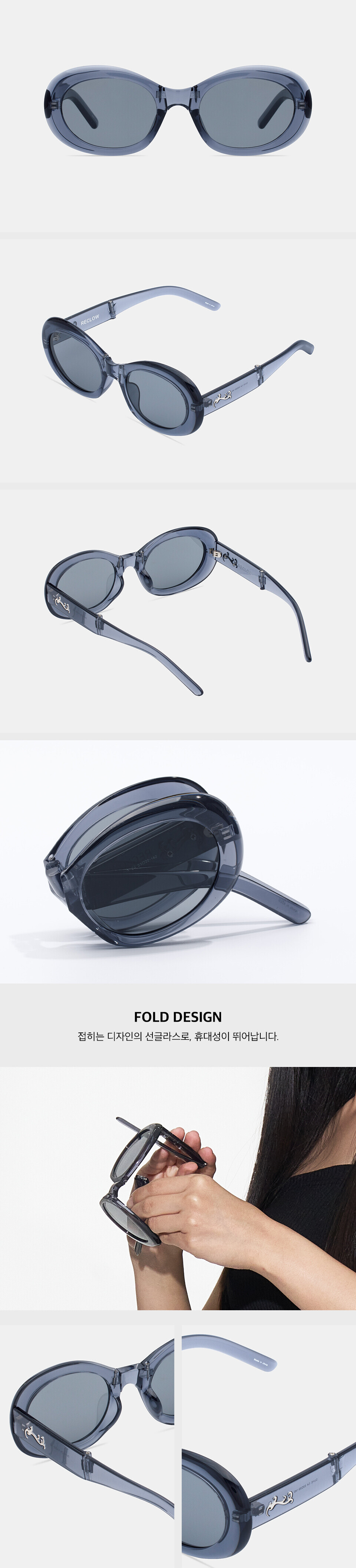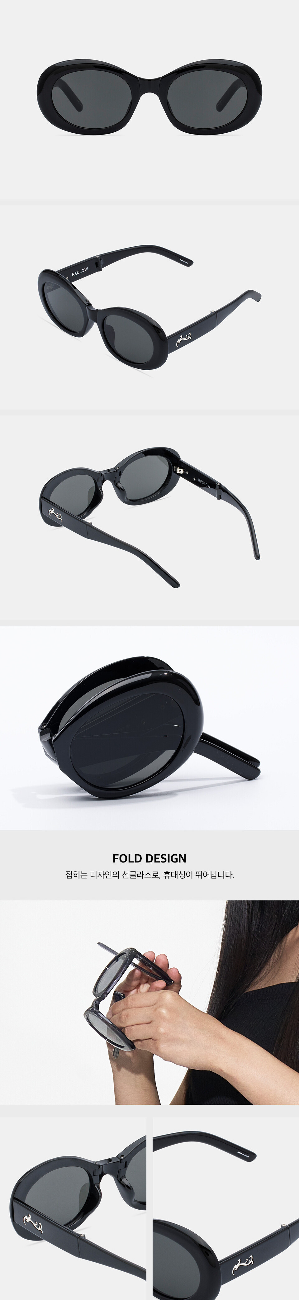 這款可摺式太陽眼鏡採用橢圓形鏡框,