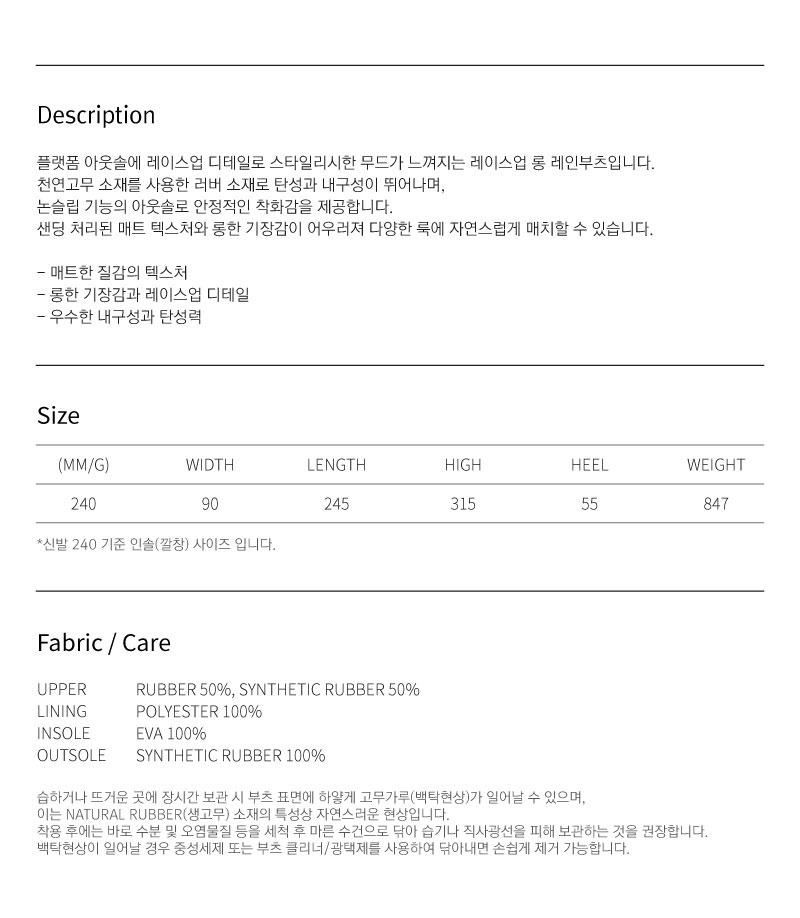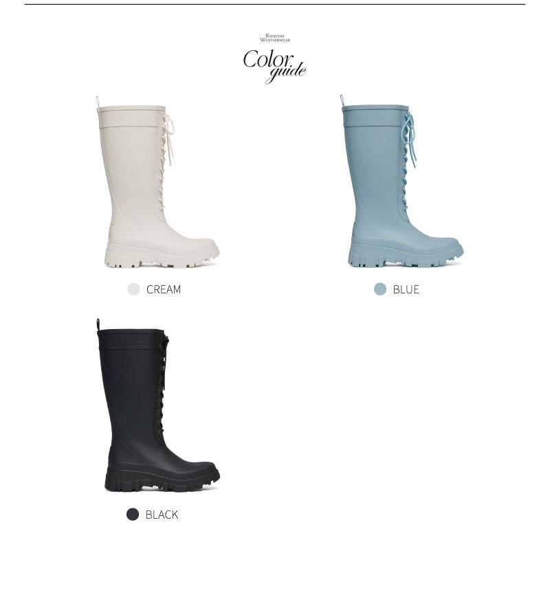 這是一款擁有厚底外底與綁帶設計,展現時尚風格的長筒綁帶雨靴