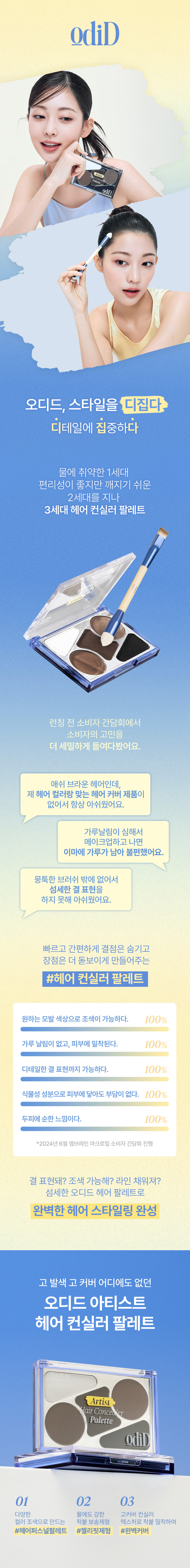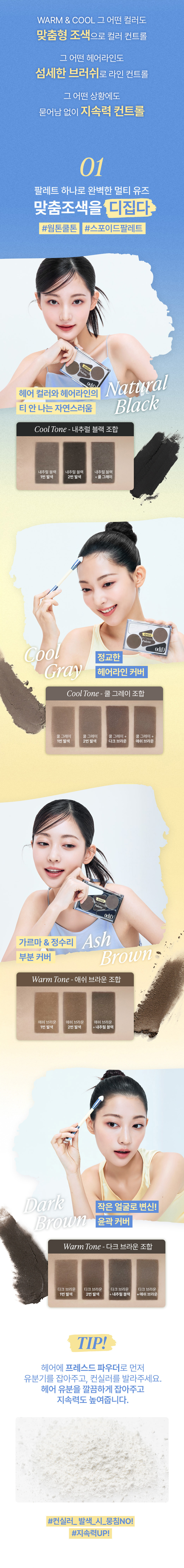 odiD Artist Hair Concealer Palette (+Brush, Hair Pin)