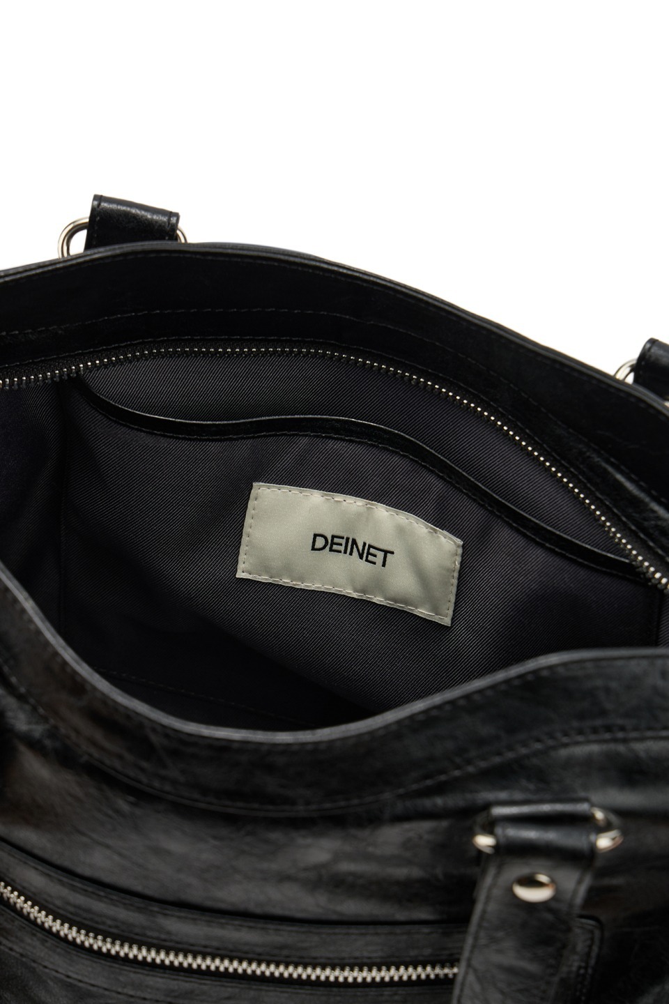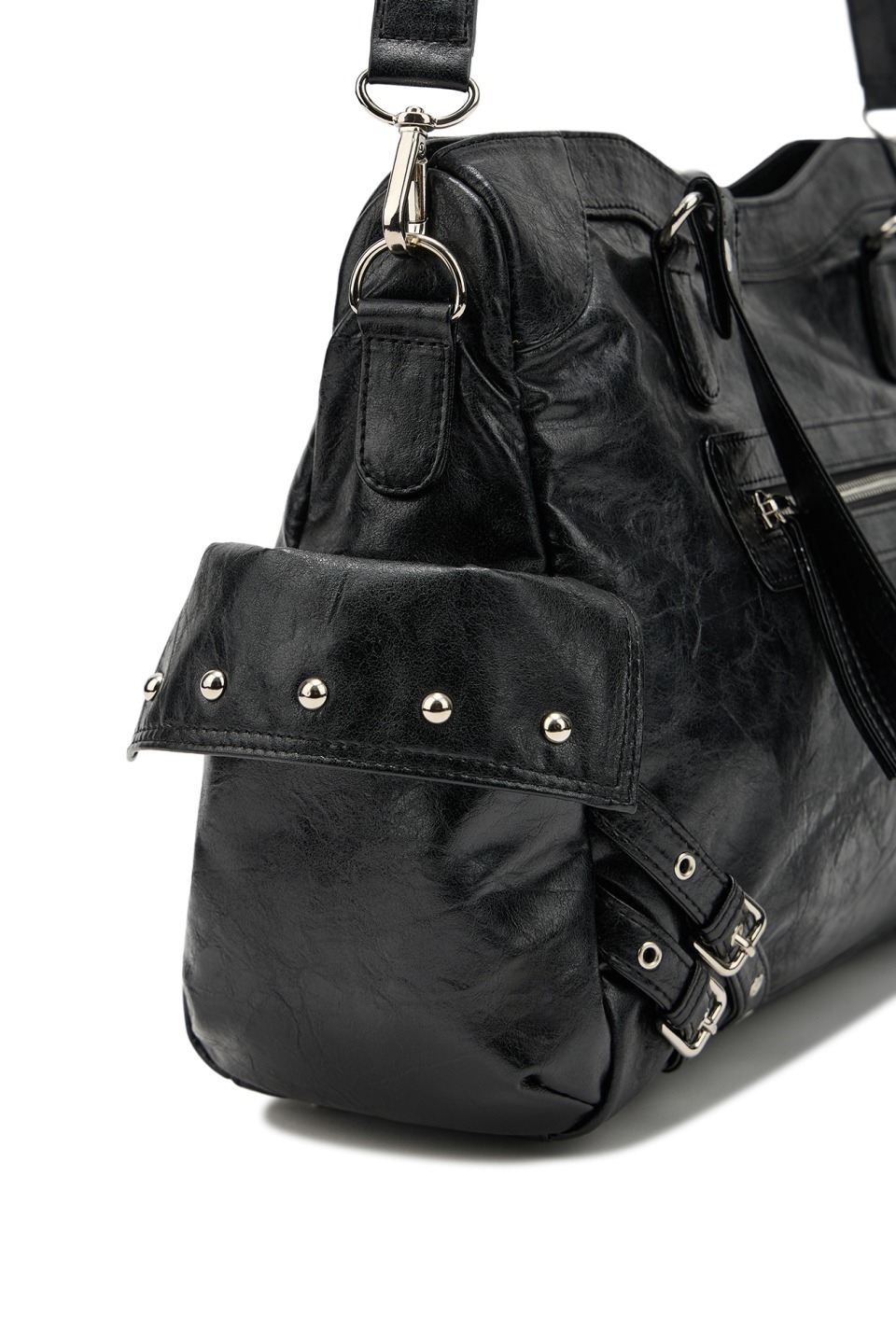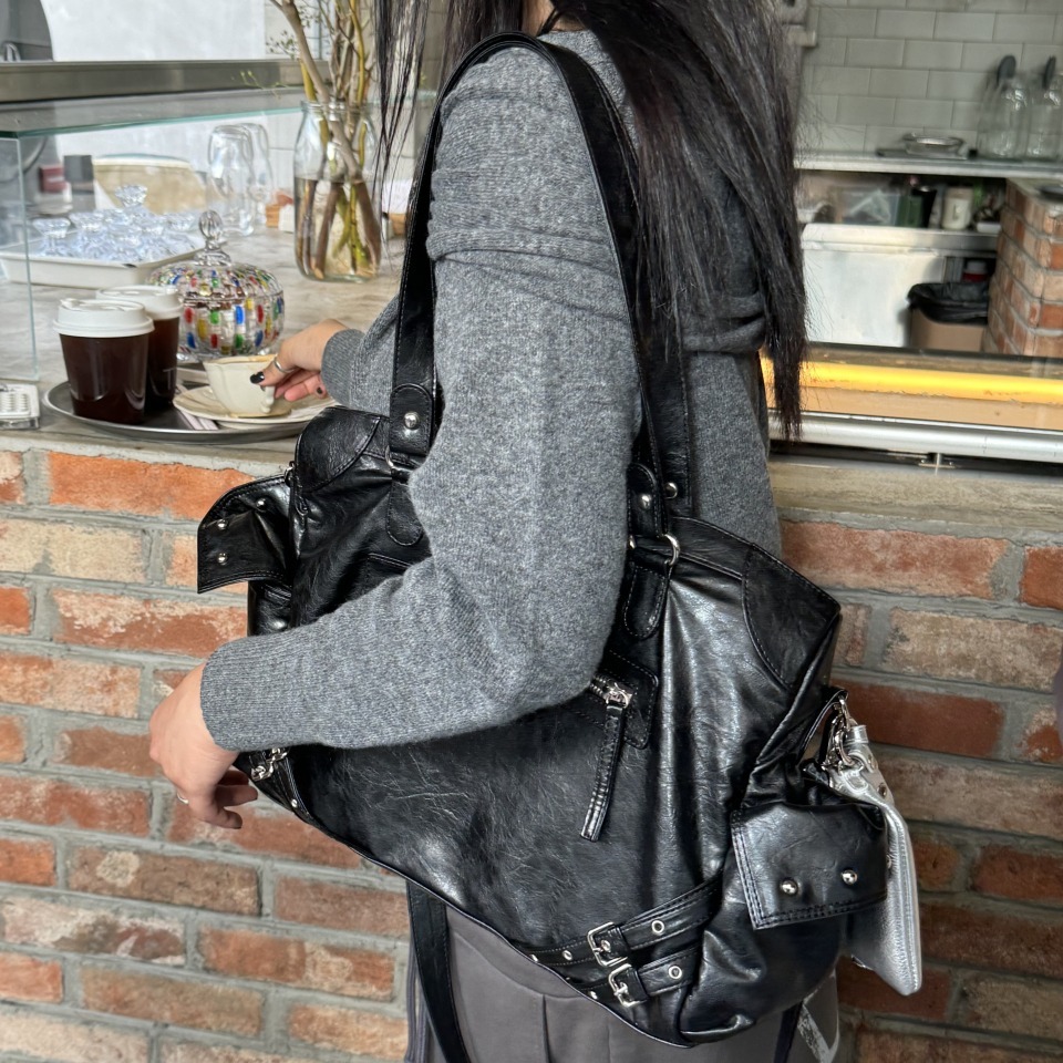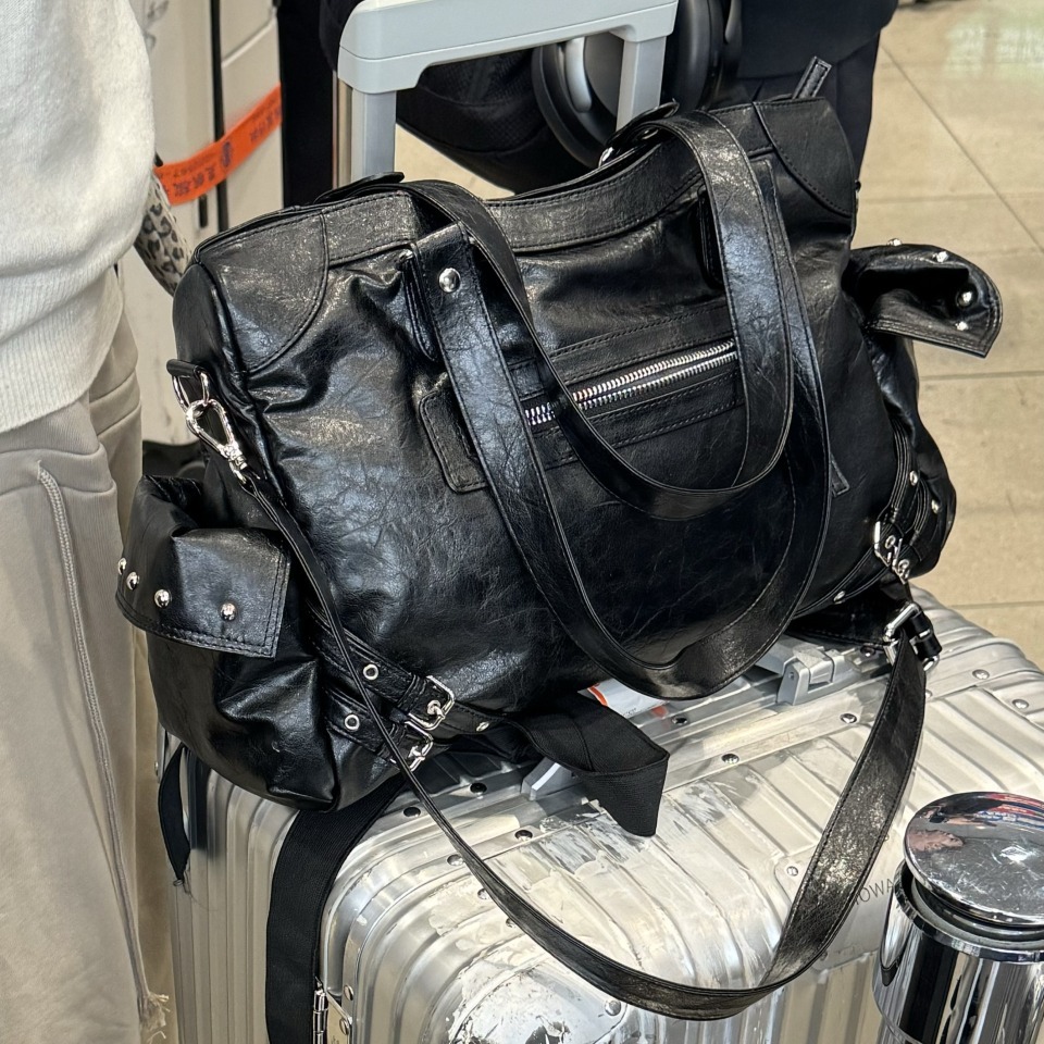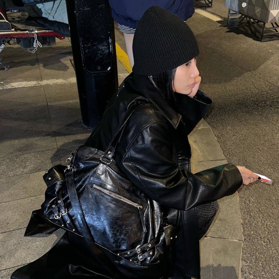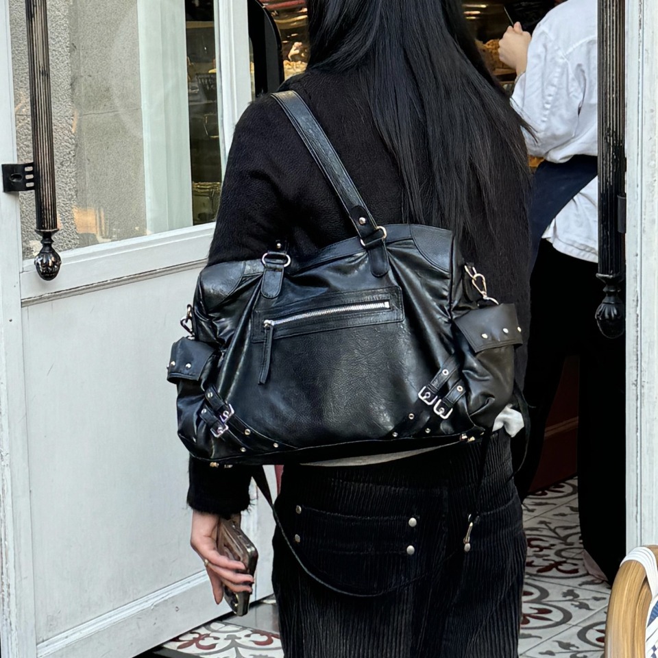 突顯鉚釘裝飾的時尚單品。兩側設有 Dainit 獨特的外口袋設計,既能展現俐落感又充滿風格。
