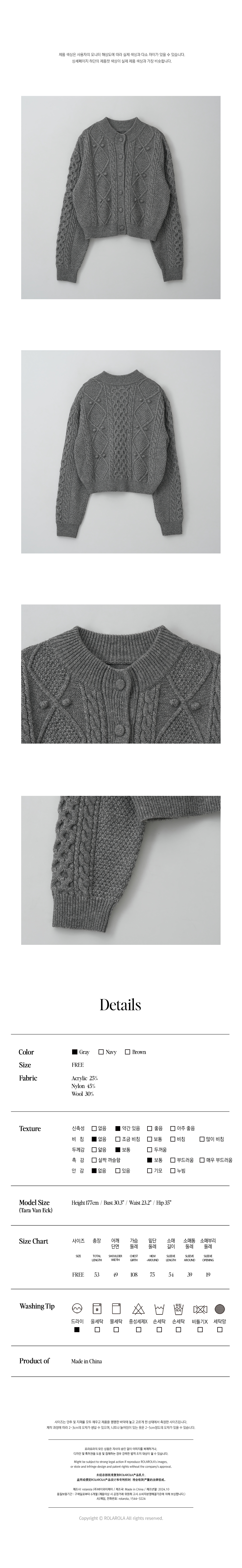 Size: FREE (總長 53 肩寬49 胸圍108 袖長54 cm)